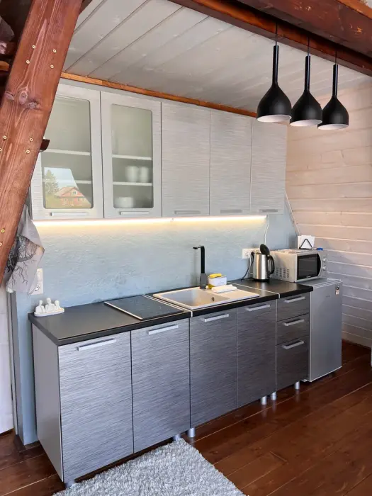 - плита, чайник, микроволновка, холодильник;