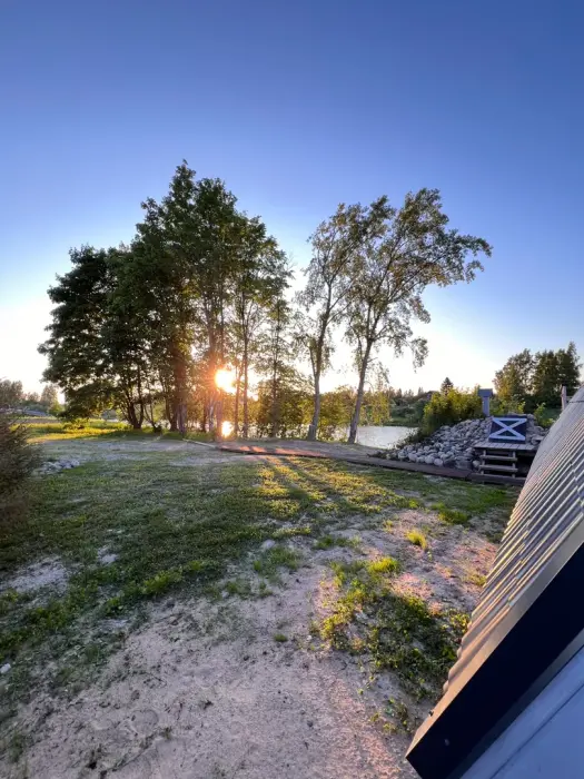 Рядом с домом мангал (шампуры и решетки есть), костровое место, большая терраса 30 кв.м. с видом на р. Олонка.