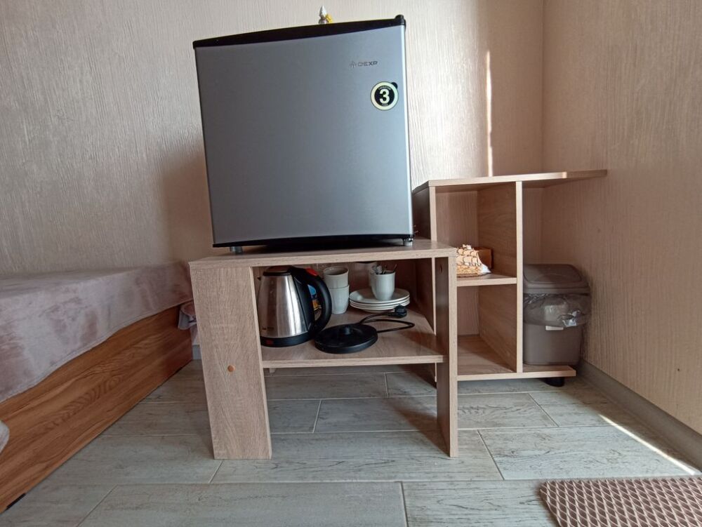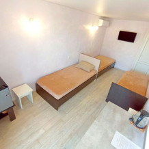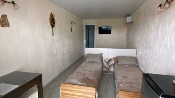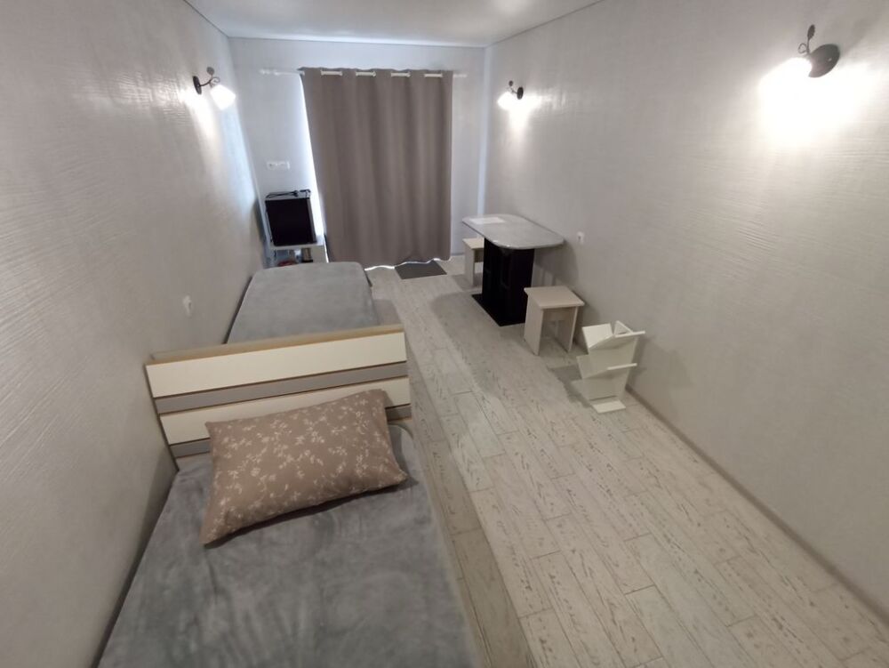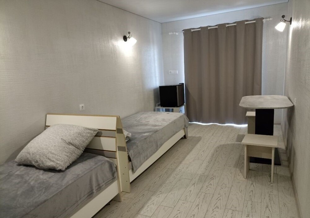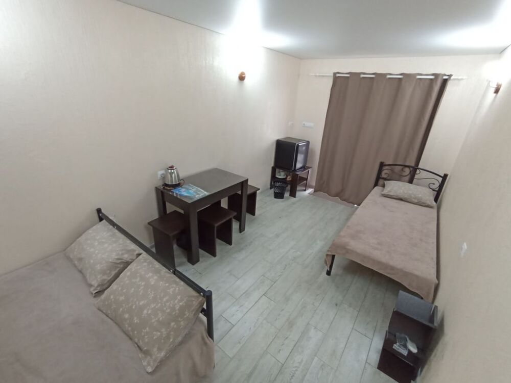 Имеется: стол, стулья, раковина, шкаф, зеркало, гладильная доска, утюг, шторы блэкаут, москитная сетка. Душ и туалет находятся в зоне общего пользования.
