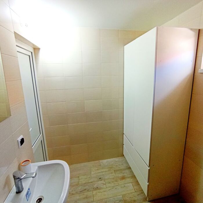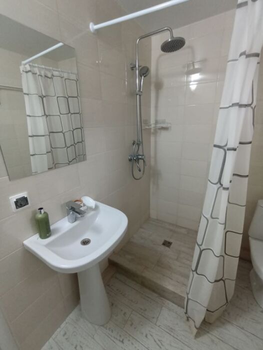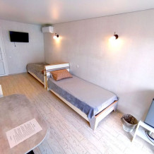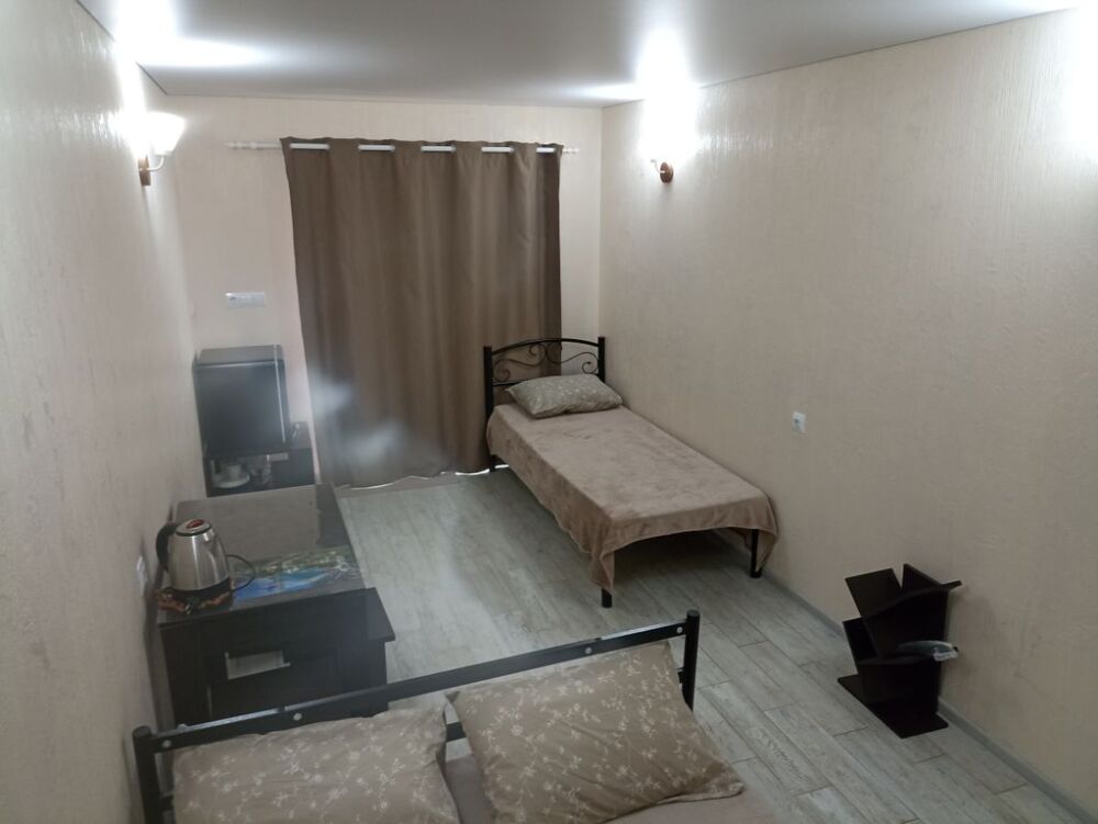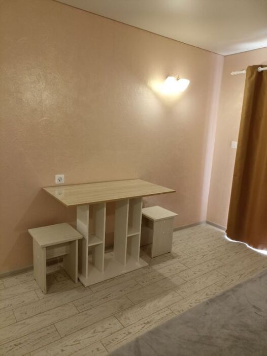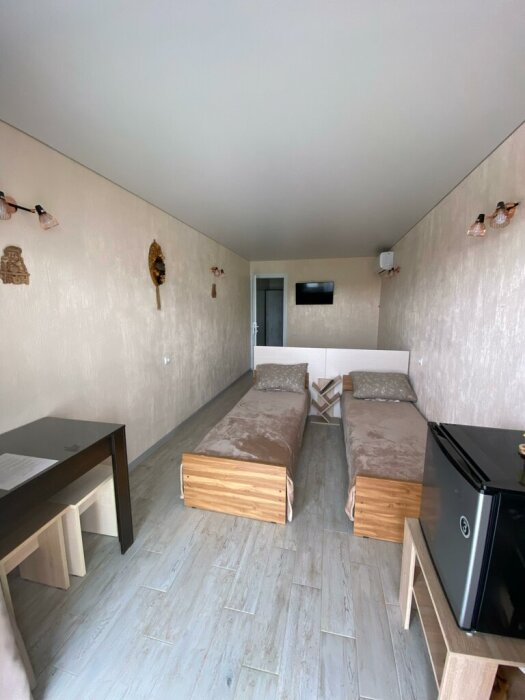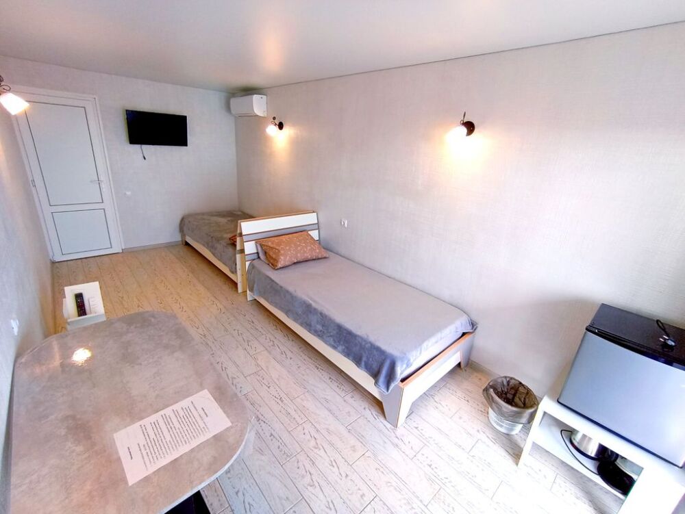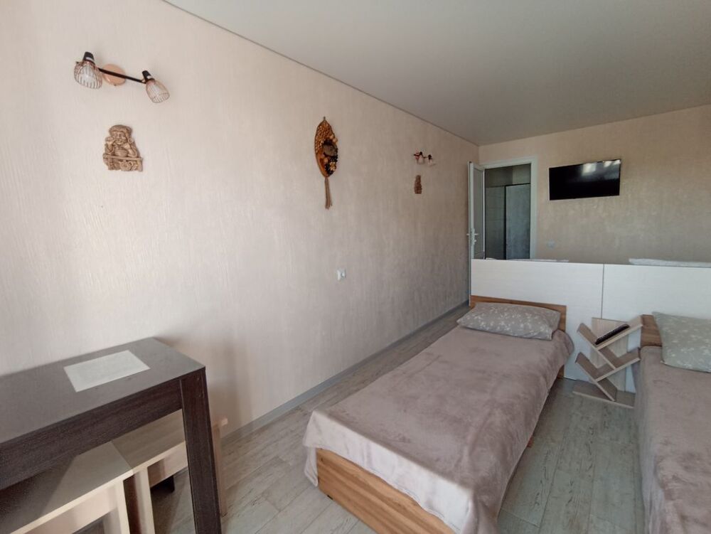 Имеется: стол, стулья, раковина, шкаф, зеркало, гладильная доска, утюг, шторы блэкаут, москитная сетка. Душ и туалет находятся в зоне общего пользования.