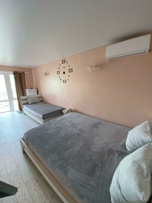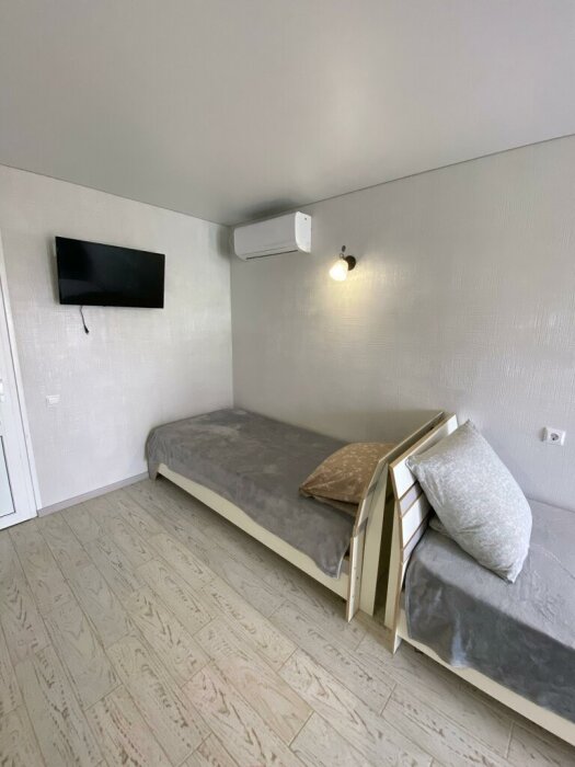 Основные спальные места: 3. Есть доп. место - при необходимости, хорошая раскладушка. В комнате: шторы блэкаут, москитная сетка.