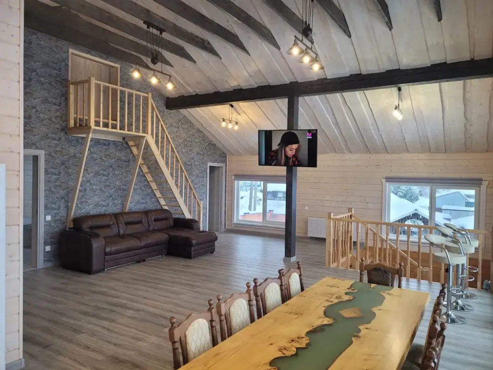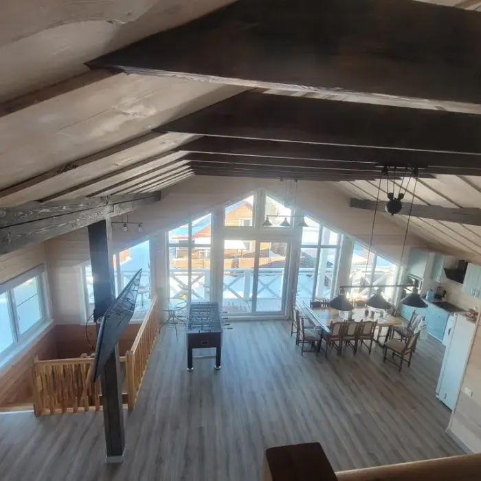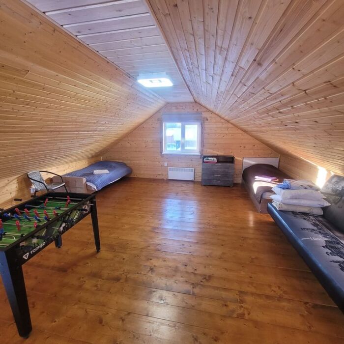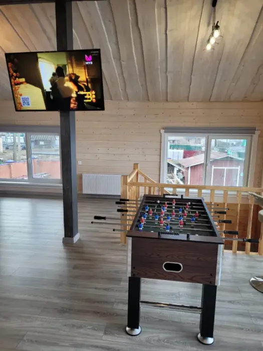 - 7 отдельных спальных комнат, 5 санузлов, 2 полноценные кухни, 2 гостиных и сауна с просторной комнатой отдыха в доме. Настольный футбол, огромный телевизор