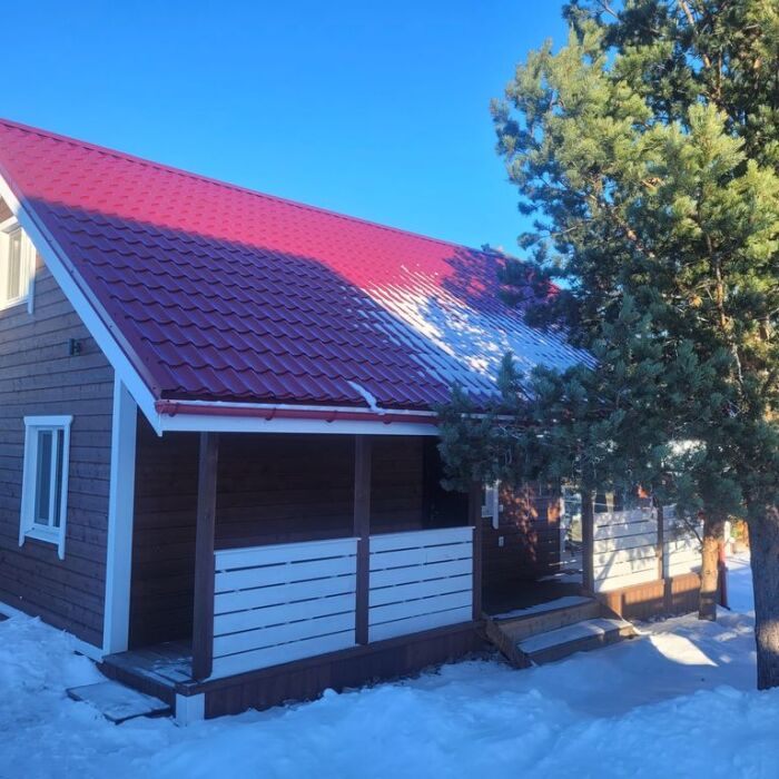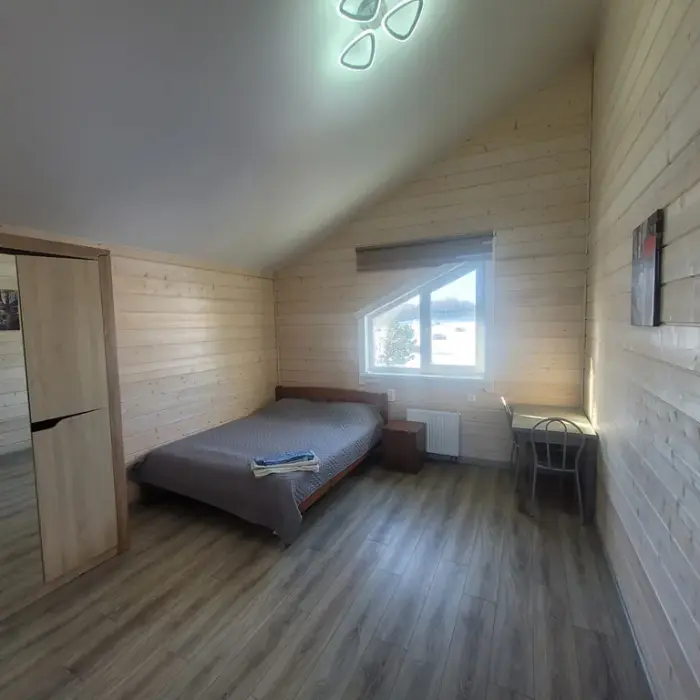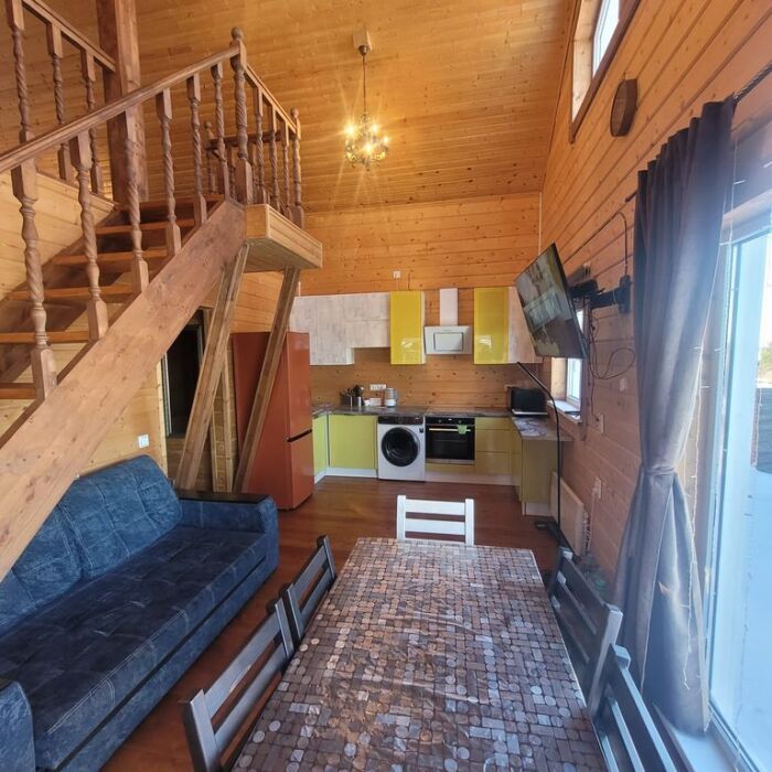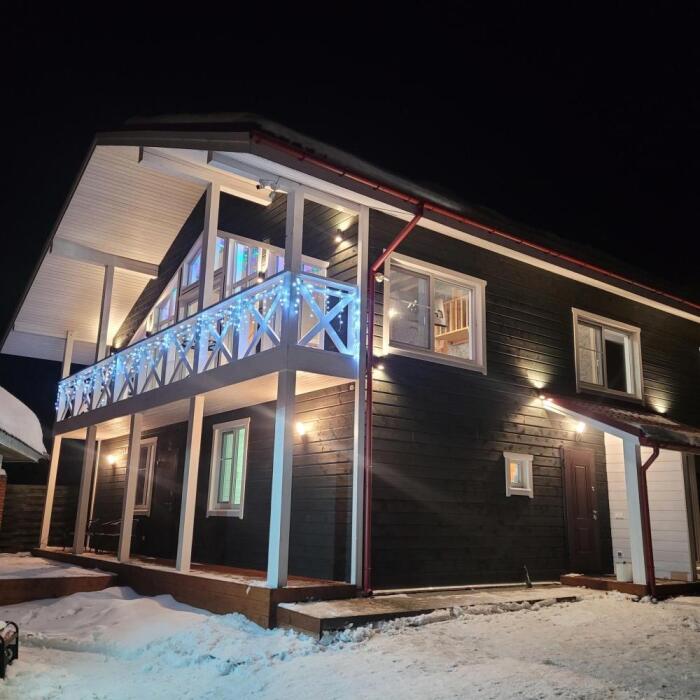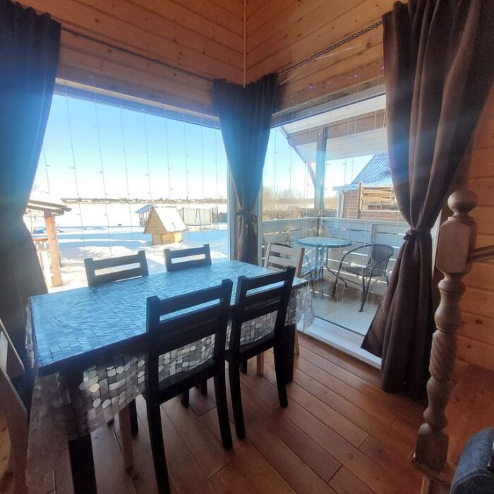 Кухня полностью оснащена- посудомоечная машина, стиральная машина, индукционная плита, духовой шкаф, вытяжка, микроволновая печь, посуда в достаточном количестве. 3 отдельные спальные комнаты. Сан.узел и душ в доме. Крытая трасса с мебелью и открытая веранда на улице с большим столом, мангалом, коптильней, решетками и шампурами. Большая, полностью закрытая (огражденная) территория, с возможностью стоянки личного автотранспорта. Свой берег, с выходом в Онежское озеро. Баня на дровах.
