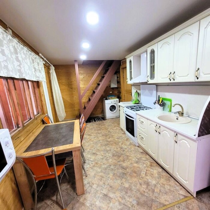 Просторная кухня, 4 комнаты. Большая, полностью закрытая (огражденная) территория, дом из тесаного бревна, крытая веранда. Свой берег, с выходом в Онежское озеро. Баня на дровах. Крытая терраса, мангал, коптильня для рыбы, качели, дартс, батут 3.96, велосипеды, спутниковое телевидение, плазма 52 по диагонали. Санузел, душ в доме.