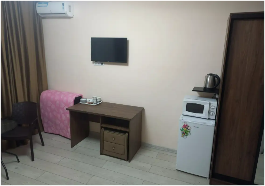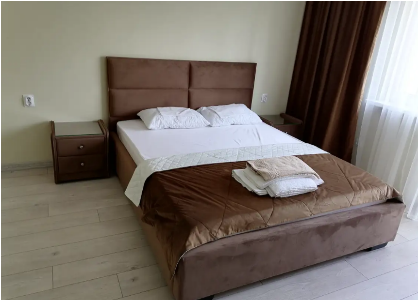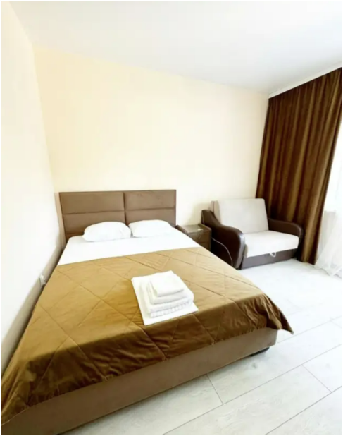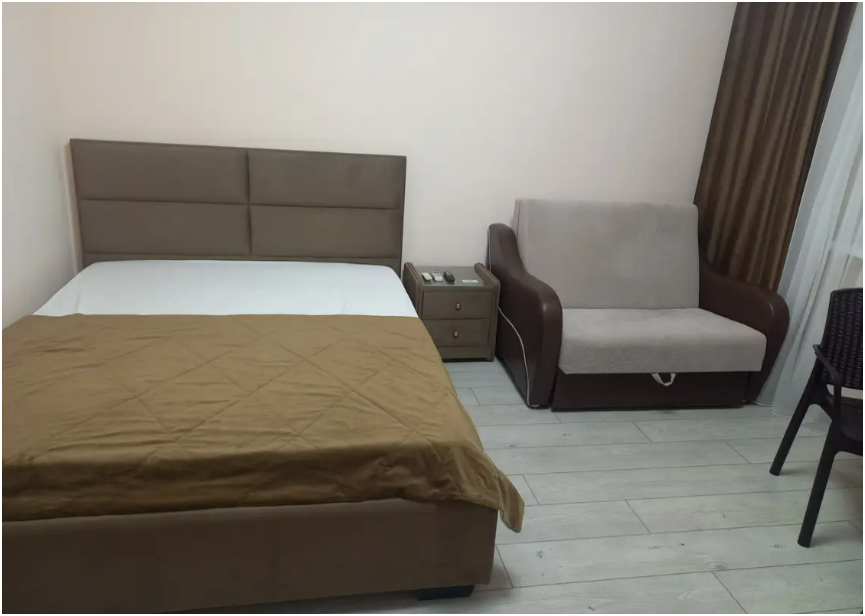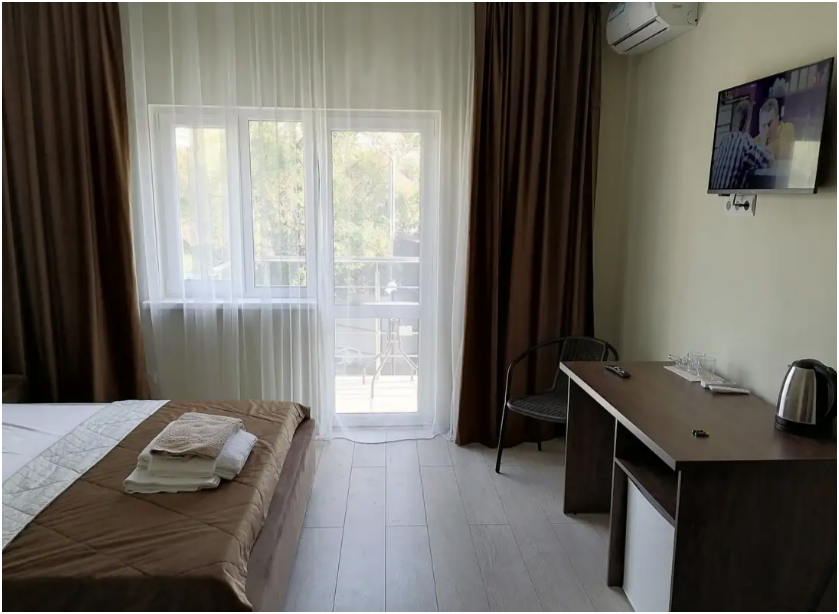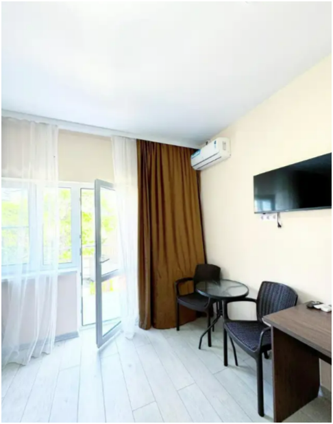 Современные номера со всеми удобствами: новая мебель, кондиционер, телевизор, холодильник, чайник, с/у, балкон, 2-местная кровать, диван-кровать, доп. место (современная раскладушка на ламелях с матрасом).