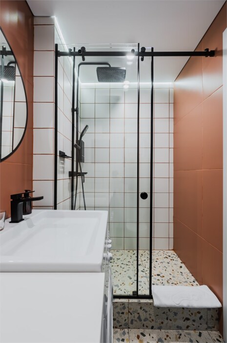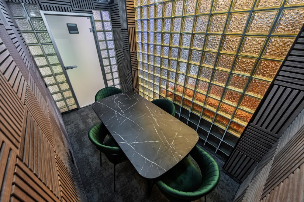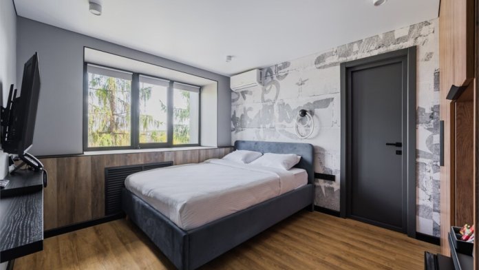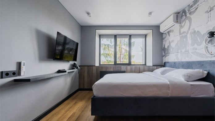 Оснащение соединенного номера: 2 кровати single (с возможностью сдвинуть в одну), 1 кровать kingsize, ортопедические матрасы, шкафы, закрытая система хранения вещей, рабочая зона, кухонная зона (холодильник, микроволновая печь, чайник, стиральная машина), 2 санузла, ванна, набор посуды и столовых приборов, набор гигиенических принадлежностей, полотенца, кондиционер, 2 телевизора 43 дюйма, сверхбыстрый wi-fi, ультрасовременное освещение, шторы блэкаут.