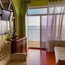 Номера представлены спальней с двуспальной кроватью и гостиной. Дополнительные места в номерах данной категории предусмотрены. В номерах балконы с видом на море.