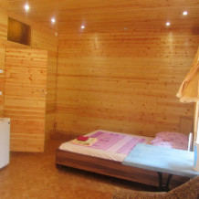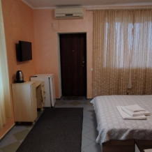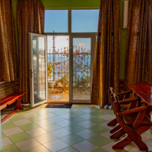 Номера представлены просторной комнатой с одной двуспальной кроватью и двумя полуторными кроватями. Номера данной категории идеально подходят для большой семьи или компании, номер — №18 с выходом во двор.
