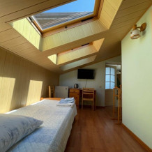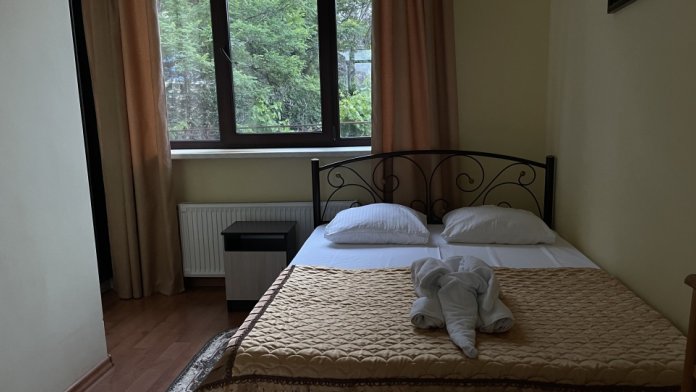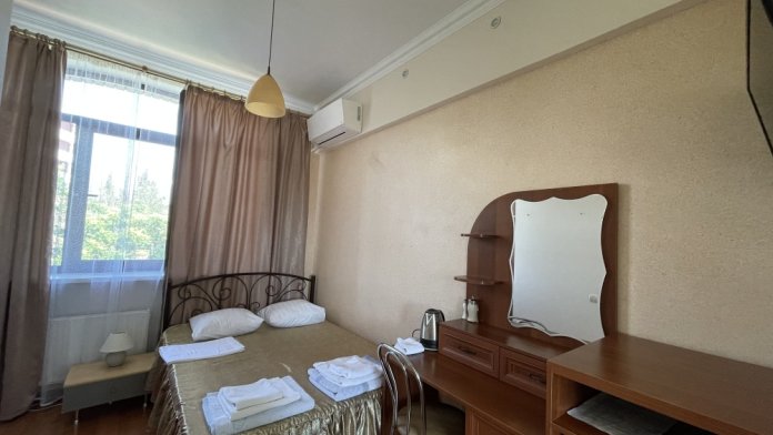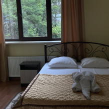 В номере есть кондиционер, телевизор, кабельное телевидение, бесплатный Wi-Fi, а также санузел с душевой кабиной и феном. В номере есть набор посуды, чайник и холодильник. Большой плюс - вода горячая и холодная доступна круглосуточно. Ежедневно проводится влажная уборка. Для вашего удобства, мы предоставляем кухню для самостоятельного приготовления пищи, мангал, садовый камин, а также парковку для машины на закрытой территории. Рядом с отелем есть детская площадка и бассейн, а Рынок находится всего в 5 минутах ходьбы. Мы гарантируем, что ваше пребывание у нас будет комфортным и удобным!