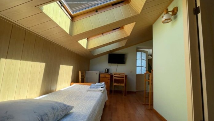 Номер рассчитан на 2 человека. В номере есть кондиционер, телевизор, кабельное телевидение, сейф, Wi-Fi, санузел с душевой кабиной и феном. Номер оборудован набором посуды, чайником и холодильником. Горячая и холодная вода доступны круглосуточно. Ежедневная уборка производится с влажной уборкой помещения. К вашим услугам кухня для самостоятельного приготовления пищи, мангал, садовый камин и парковка для автомобиля на закрытой территории.