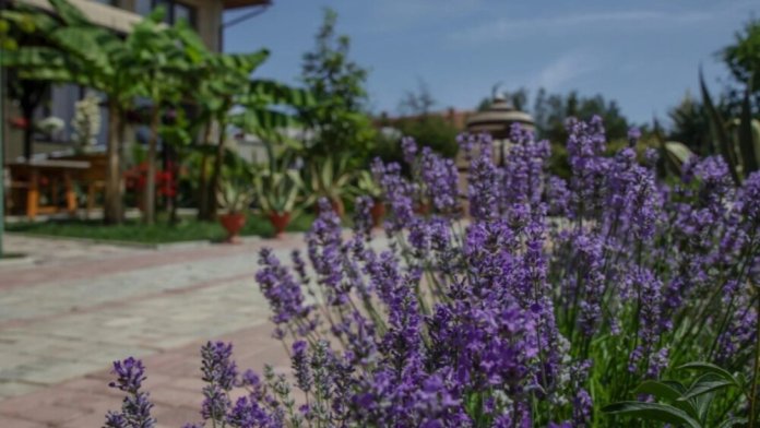 Во дворе в тени находятся две летние площадки со столиками. К услугам гостей есть мангалы, садовый камин для приготовления шашлыка, плова и других блюд из мяса, рыбы и овощей, оборудованные кухни для самостоятельного приготовления пищи, гладильная, отдельные зоны для курящих. На всей территории Wi-Fi покрытие (Internet бесплатно). Озеленение представлено газонами, многолетними цветами, кустарниками, растут банановая пальма.