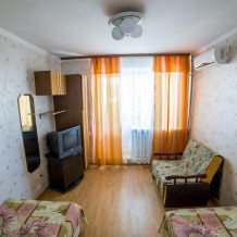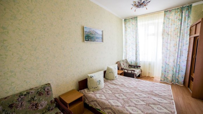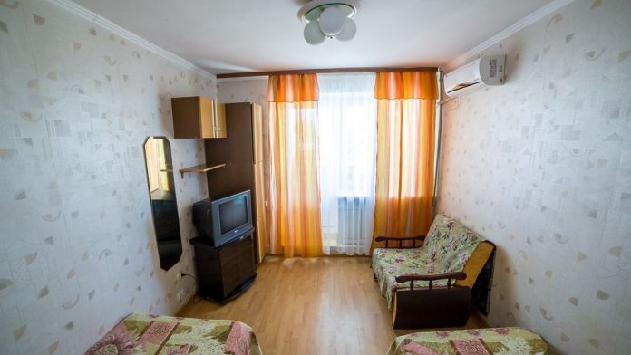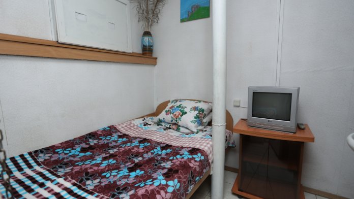 Комната 6.0м2, одна кровать, умывальник, шкаф, кабельное телевидение, Wi-Fi, напольный вентилятор, окно – стеклопакет, потолки 2.47м.