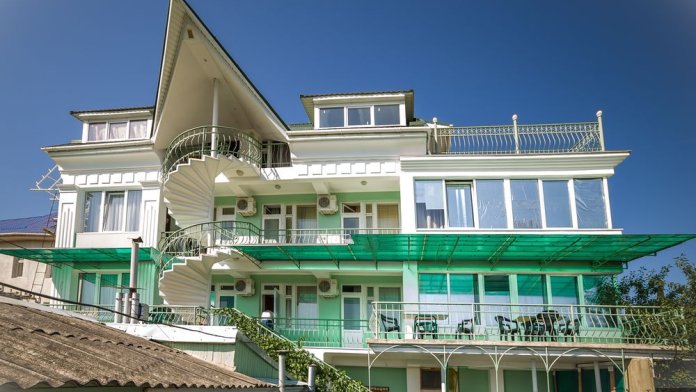 Обеспечить клиентам стопроцентный комфорт – наша главная задача! Специально для людей с гиперчувствительностью к солнечным магнитным бурям кровля для экранирования здания выполнена из металлочерепицы, а две стены облицованы профнастилом по системе «вентилируемый фасад». Плюс ко всему главным фасадом здание смотрит на восток и располагается вдоль потоков воздушных масс, вентилирующих Алушту как с гор, так и с моря. Именно поэтому на балконах отсутствует зной, свойственный курортному городу летом, и воздух не застаивается, а всегда остается свежим. А вот от неожиданных осадков балконы спасут навесы из прозрачного поликарбоната. Снаружи стены дополнительно утеплены специальным материалом, что, в совокупности с вышеперечисленным, обеспечивает комфортный температурный режим в помещениях дома.