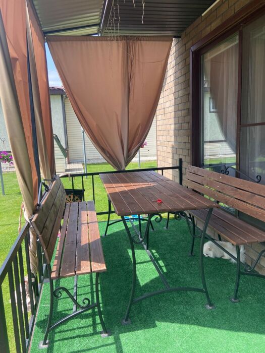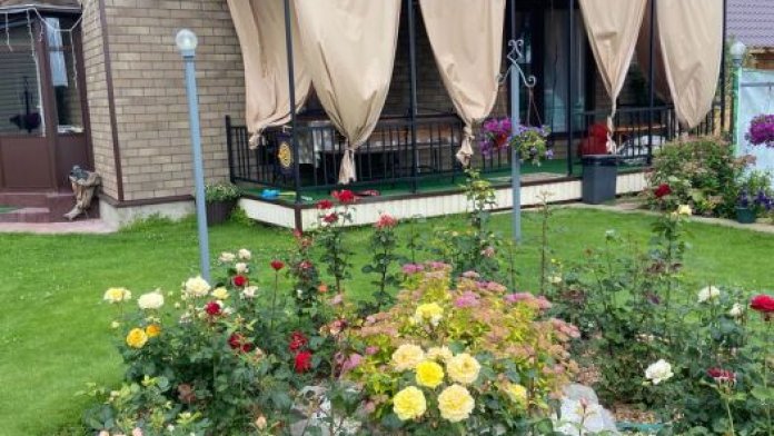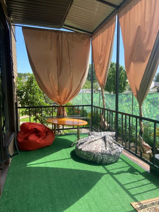 На всей территории участка зелёный газон, очень удобно с детьми.