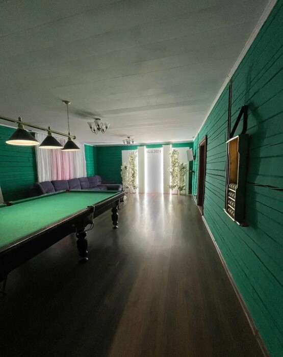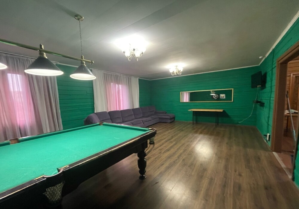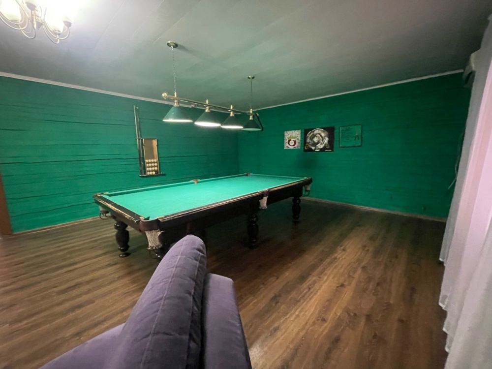 Гостиная-бильярдная. Уютная зона с мягким диваном, телевизором смарт, саундбаром, русский бильярд, идеально для вечернего отдыха.