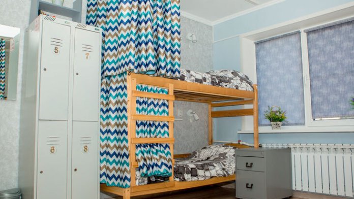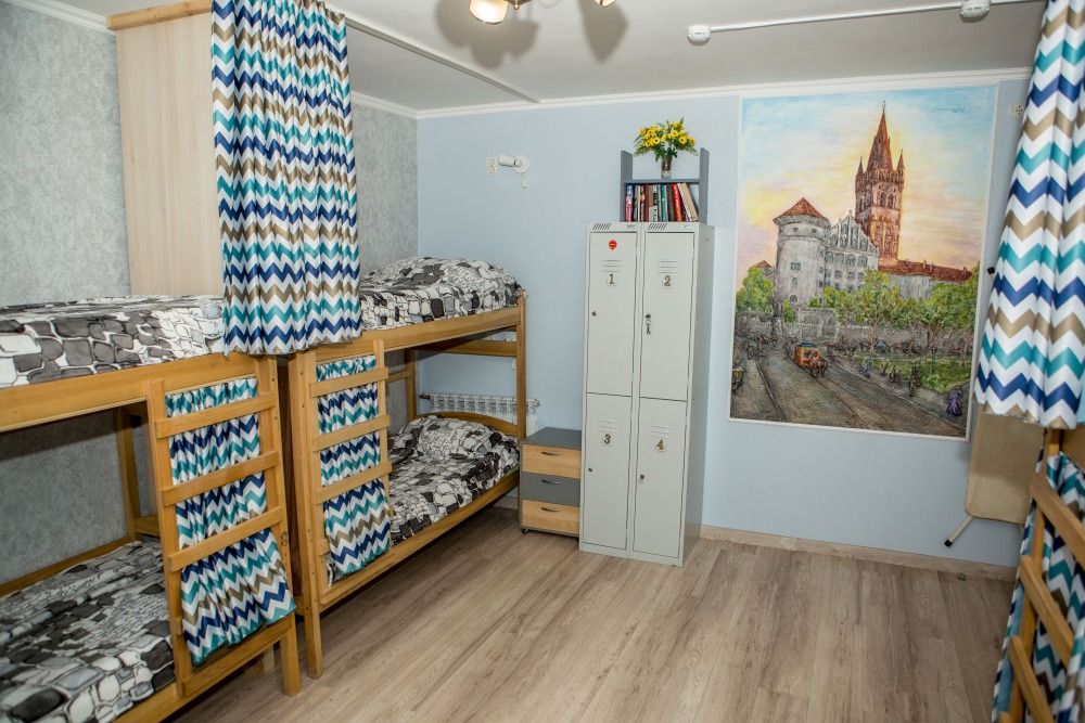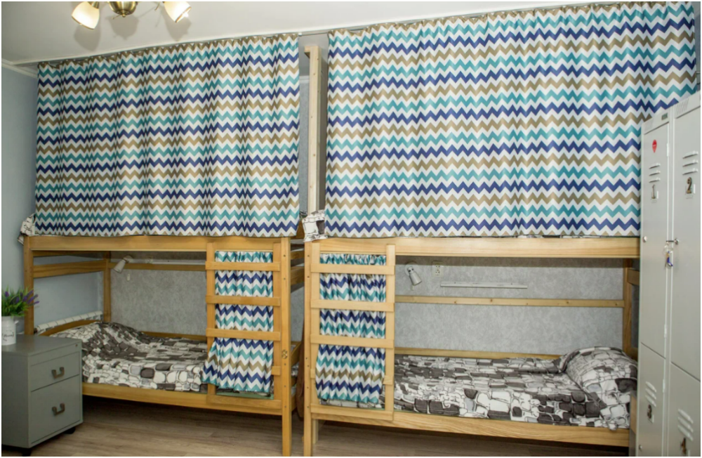 Спальные места в квартире. Чистые и уютные комнаты, качественный ремонт: стеклопакеты, кровати с ортопедическими матрасами, индивидуальные лампы для чтения, тумбочки, полочки, столы для занятия или чаепития, стулья, индивидуальные шкафчики для вещей, бесплатный Wi-Fi, белье и полотенца.