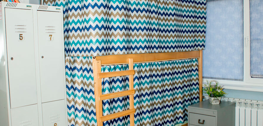 У каждого спального места имеется ортопедический матрац, светильник, розетки, тумбочки, полочки. Комната, шкафчики закрываются на ключ. В комнате есть большое зеркало, фен. стол для занятия или чаепития, книги.