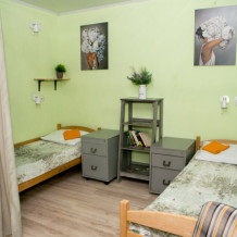 Отдельная светлая, уютная комната. В комнате удобные высокие матрасы, большой раскладывающийся диван, тумбочки, стол и металлические, запирающиеся шкафчики. У нас все продумано для комфортного проживания, чтобы гости чувствовали себя как дома. Зеркало, фен, розетки и светильники над каждым спальным местом создают удобство и комфорт. Выдаются банные полотенца. Здесь будет удобно гостить и семейным парам, и гостям, кто хочет пожить один в комнате.