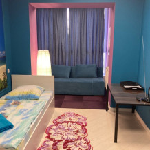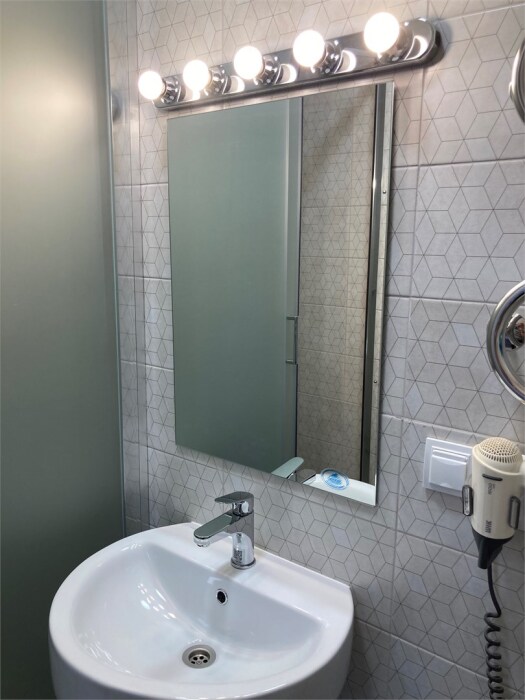 Номер оснащен постельными принадлежностями, мини кухней, в доступе гостей имеется дополнительно общая кухня с индукционной плитой, посудой для приготовления пищи. В номере есть лоджия. Санузел вне комнаты слева от выхода из номера, оснащен полотенцами, предметами гигиены, феном. Номер находится в первом корпусе над кофейней. Ключи выдаются в офисе при регистрации, либо бесконтактно. Дальнейшее передвижение осуществляется через вход со двора.
