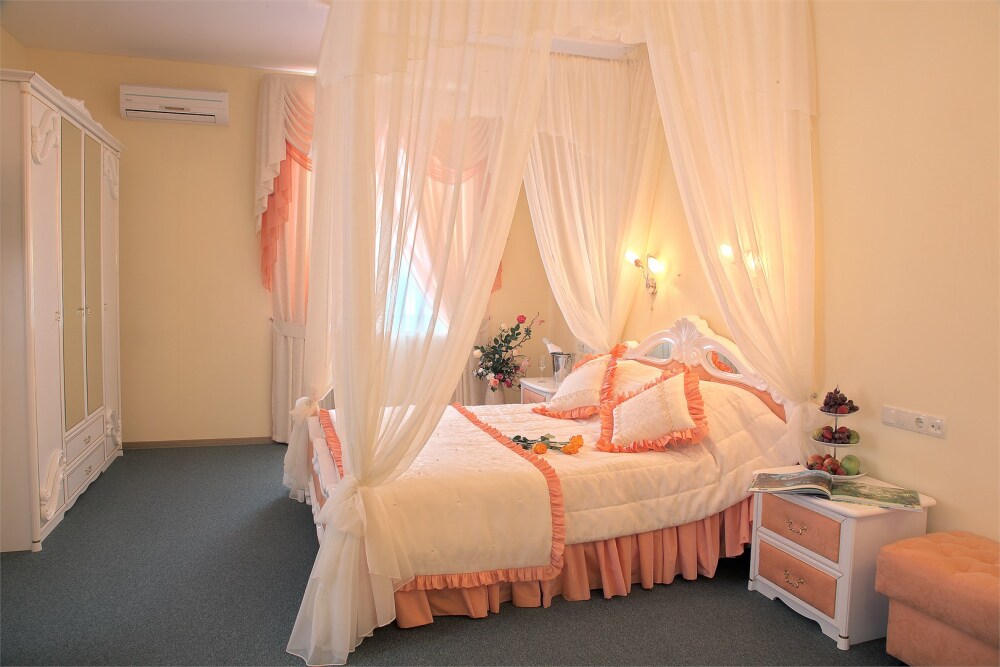 Изысканный номер для молодоженов «Свадебный Люкс» предоставляет своим гостям возможность провести самые романтичные минуты в их жизни.
