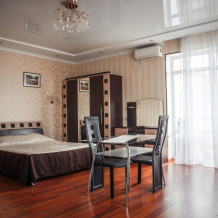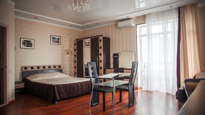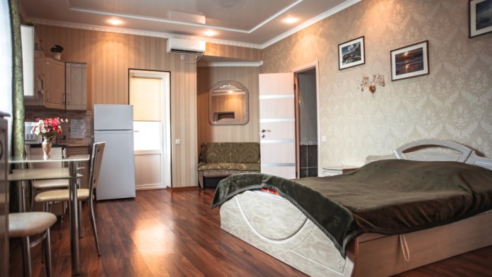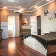 В каждом номере есть отельный санузел с постоянной подачей холодной и горячей воды, своя кухонная зона с необходимой посудой и техникой.