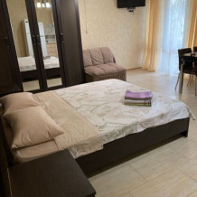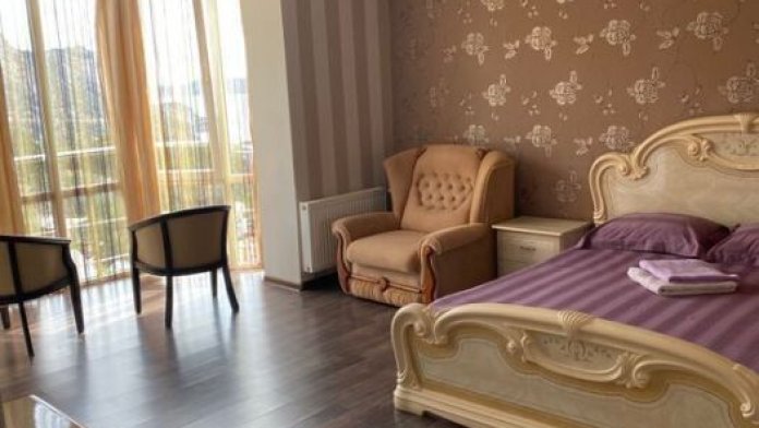 Просторный Люкс с видом на море на 2-3 человека! В номере большая двухспальная кровать, диванчик раскладной, тумбочки, шкаф, телевизор, кондиционер. На кухни микроволновая печь, холодильник, чайник, набор посуды. Санузел душевая кабина, умывальник, гигиенический душ. На балконе есть два кресла и столик.