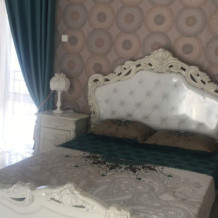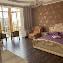 Просторный номер Люкс видом на море на 3-4 человека. В номере большая двухспальная кровать, два диванчика раскладных, тумбочки, туалетный столик, шкаф, телевизор, кондиционер. На кухни микроволновая печь, холодильник, чайник, набор посуды. Санузел-душевая кабина, умывальник, гигиенический душ! На балконе есть два кресла и столик.