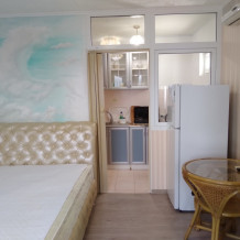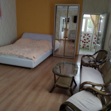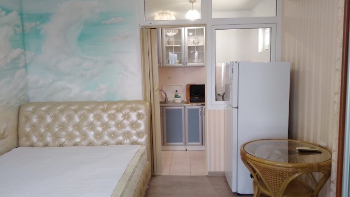 Пятиминутная удаленность от моря, пляж городской, бесплатный, мелкая галька.