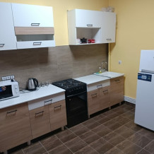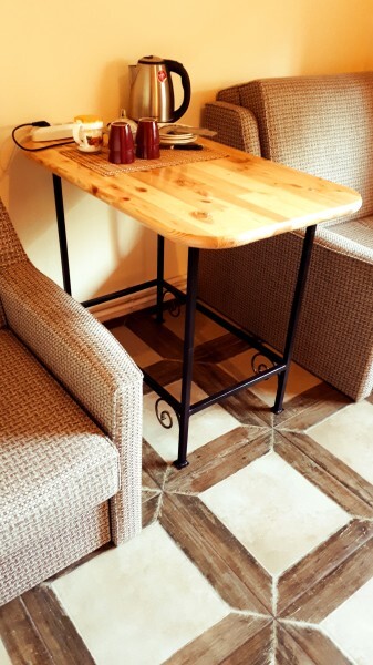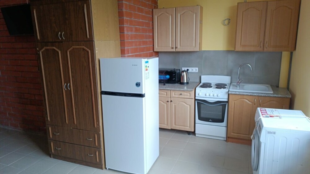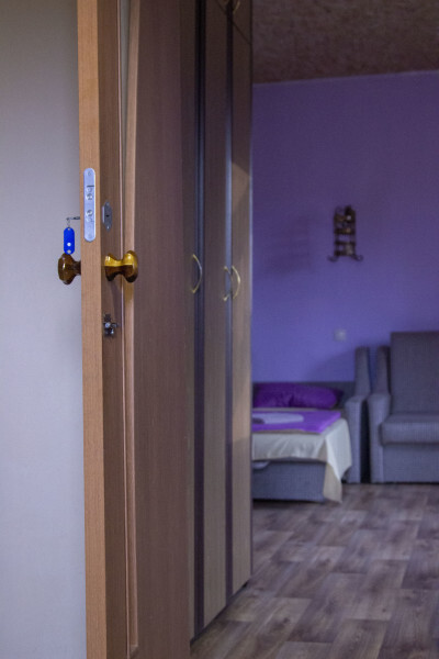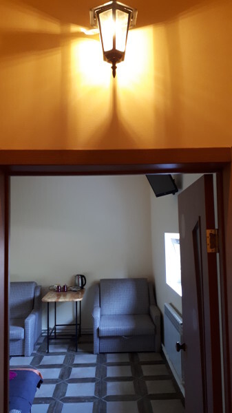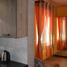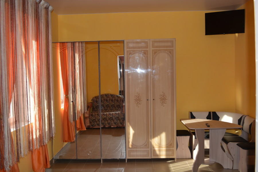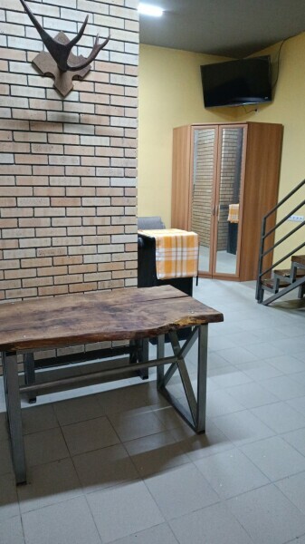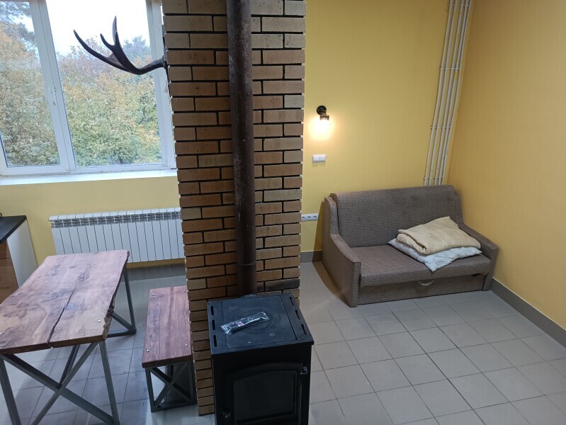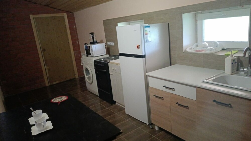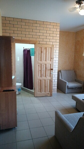 Большой уютный двухуровневый номер 50 кв м. с камином (дополнительная услуга) и ванной - авторский проект. Панорамный вид в сад с красивым хвойным деревом - сосной. В апартаментах кухня с плитой - духовым шкафом и микроволновой печью с чайником. ЖК (телевизор), холодильник, стиральная машина, полотенцесушитель. Два двухспальных места и два односпальных. Шкаф для белья и тумбочки. Мангал - барбекю бесплатно!
