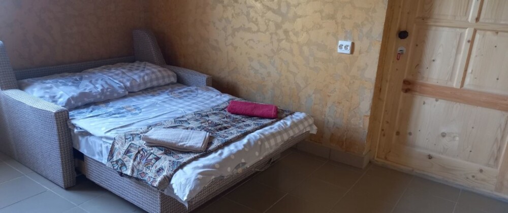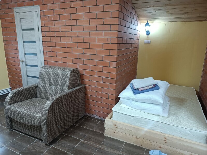 2 этаж , комната 9 кв.м. Двухспальная кровать. Мангал бесплатно. Беседка, терраса, баня по предоплате. Wi-Fi бесплатно. Парковка с видеофиксацией - бесплатно.