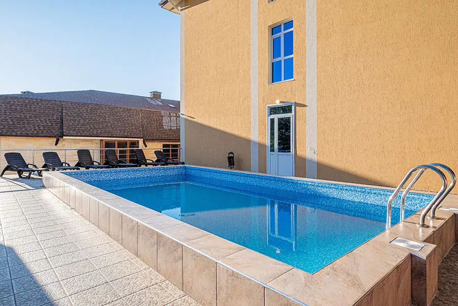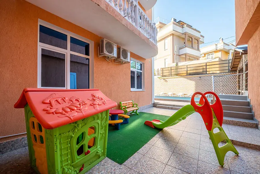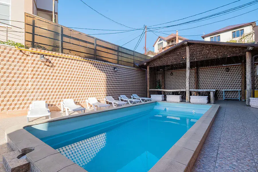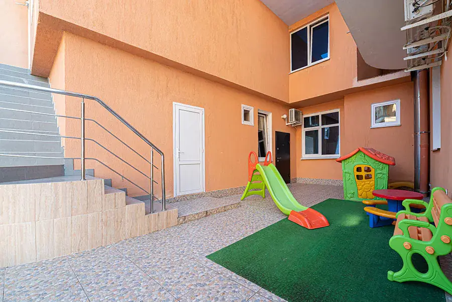 Отель состоит из двух корпусов на территории каждого из которых расположены подогреваемые бассейны с пресной водой, детские площадки, мангальные зоны с необходимым инвентарем, собственная закрытая бесплатная автостоянка. Покрытие всей территории отеля стабильным беспроводным интернетом сделают Ваш отдых по-настоящему комфортным.