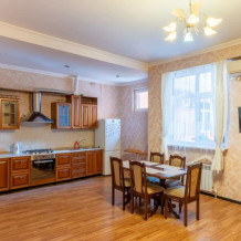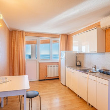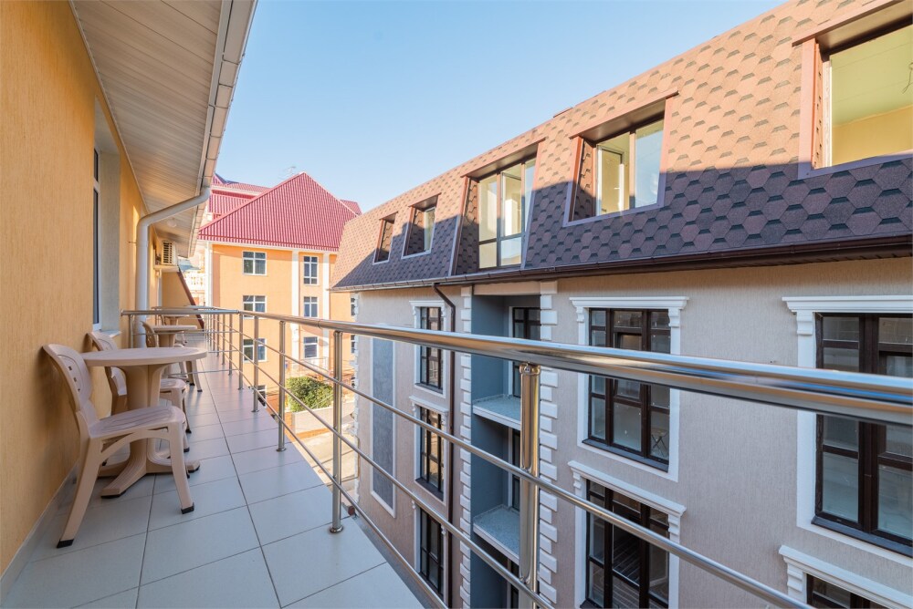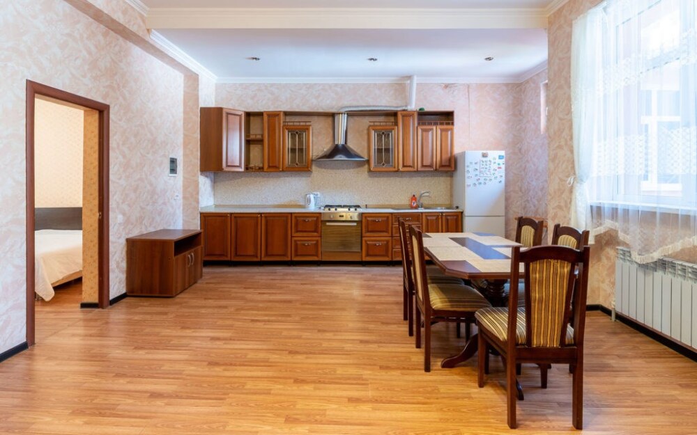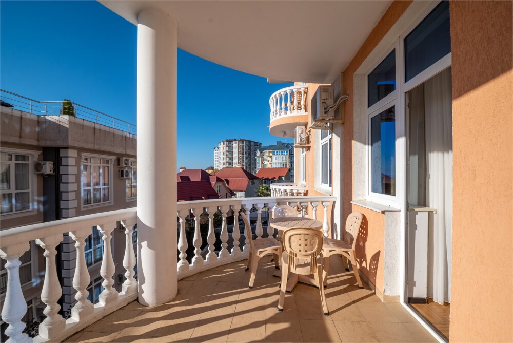 Просторный трехкомнатный номер с двумя двуспальными кроватями, двухместным раскладным диваном, кухней и балконом.
