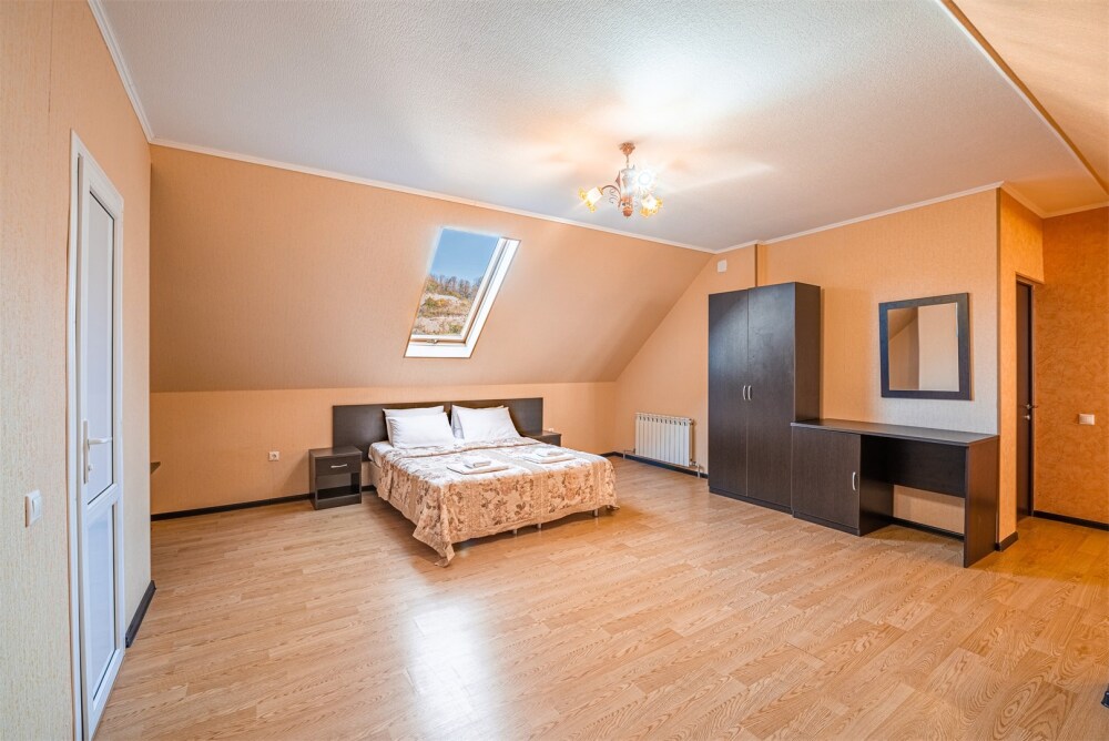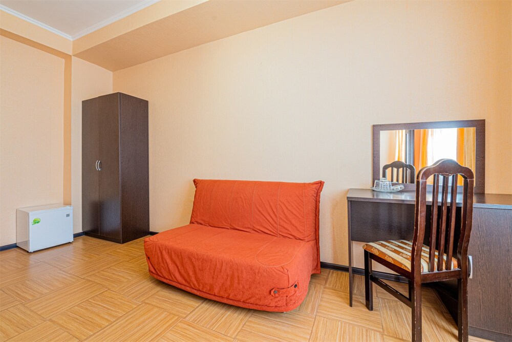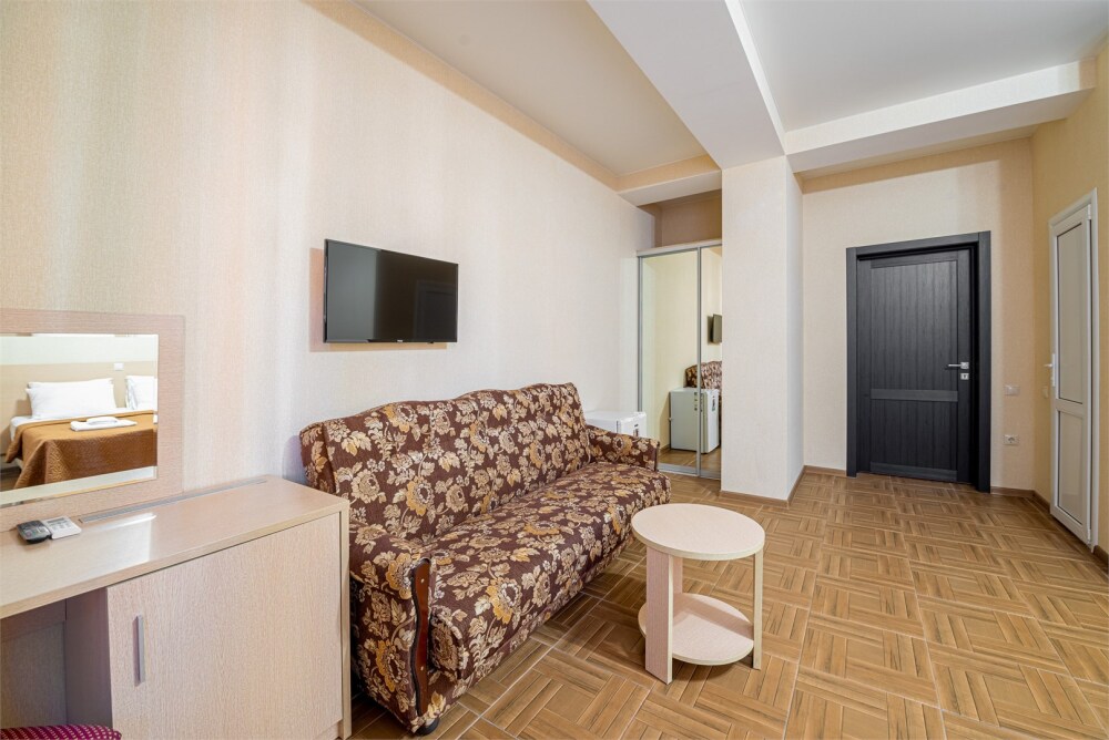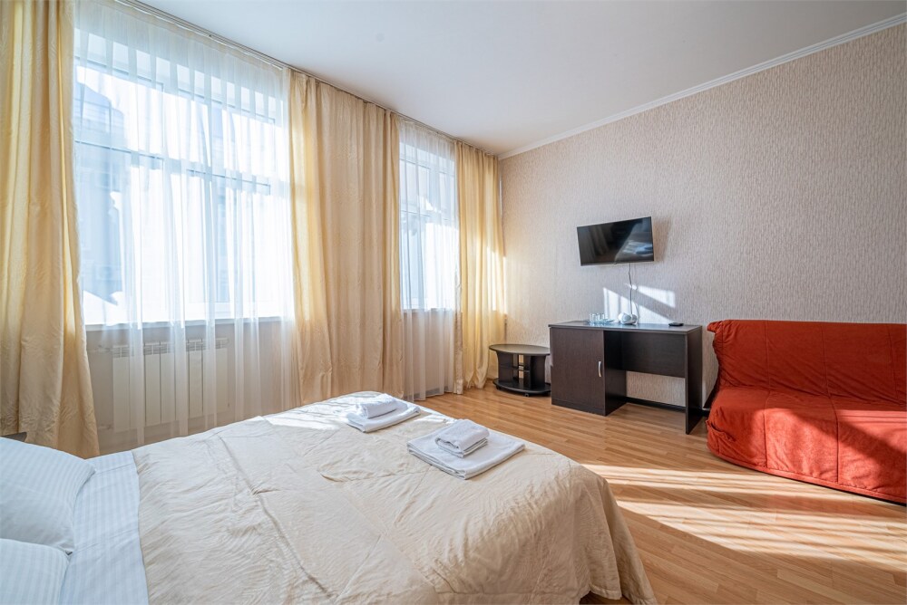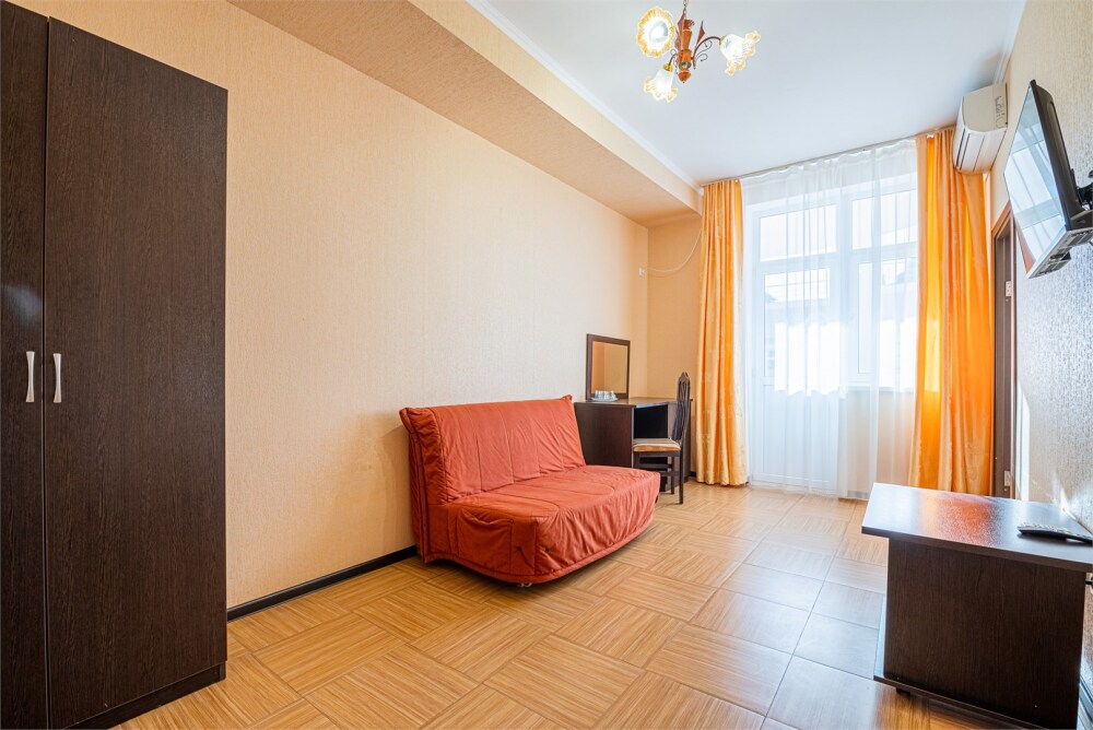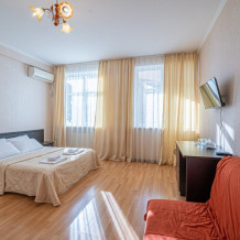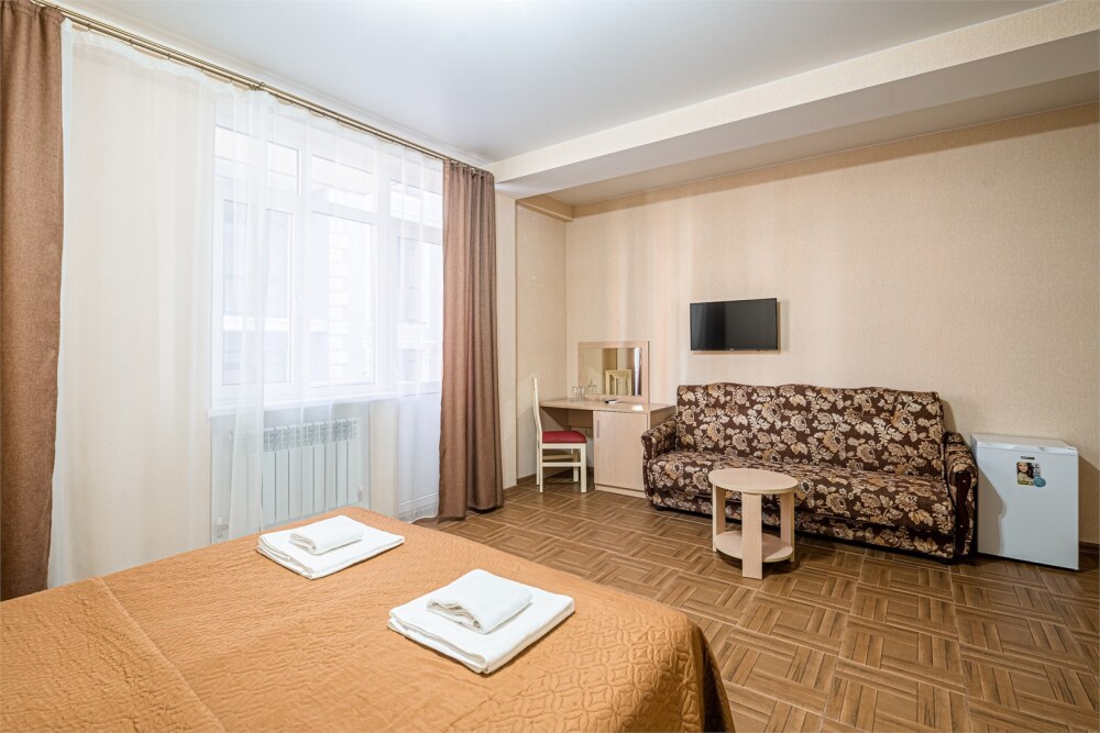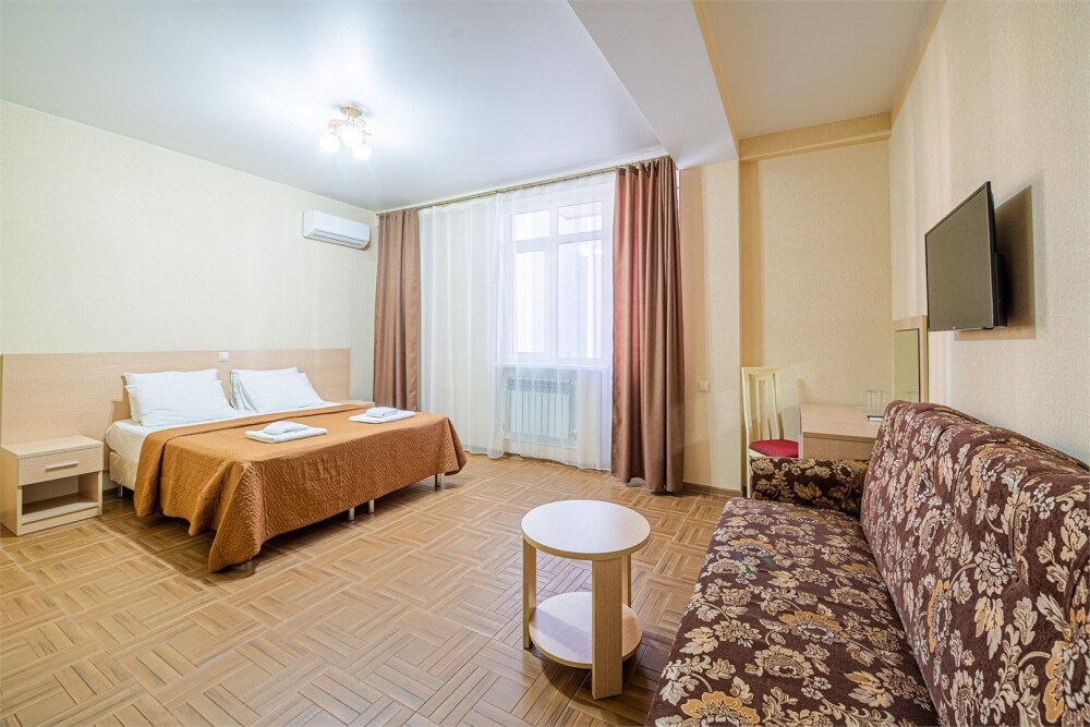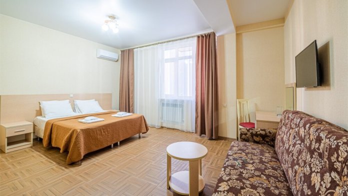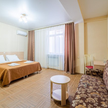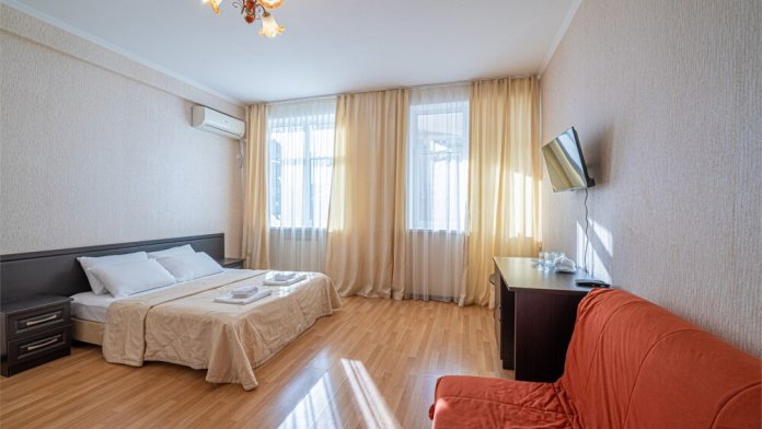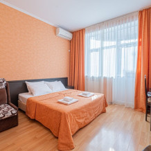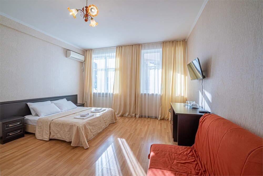 Комфортный однокомнатный номер с двуспальной кроватью и двухместным раскладным диваном.