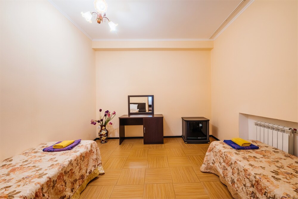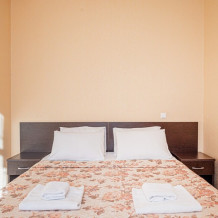 Уютный однокомнатный номер с двуспальной кроватью или двумя односпальными кроватями и креслом-кроватью, либо раскладной кроватью.