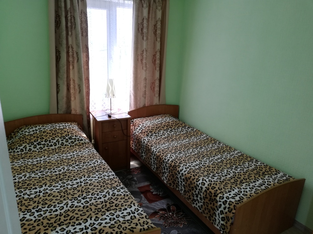 двухкомнатный, 4-местный номер, общая площадь – 44 м.кв.) - Спальня-гостиная (двуспальная кровать, диван, кабельное ТВ, кондиционер), детская комната (2 односпальные кровати), холл (холодильник), санузел (душ, унитаз, умывальник, фен, количество полотенец – 2 на 1 человека). Балкон с видом на море. Летний дворик для отдыха.