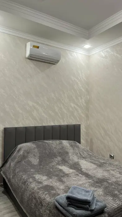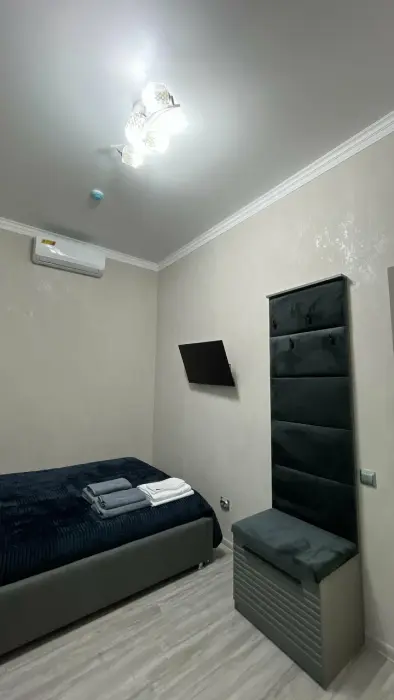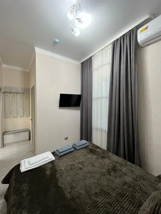 В номере: двуспальная кровать, диван, Wi-Fi в номере, Сейф, Душ, Электрочайник, Телевизор, Кондиционер, Халат, Фен