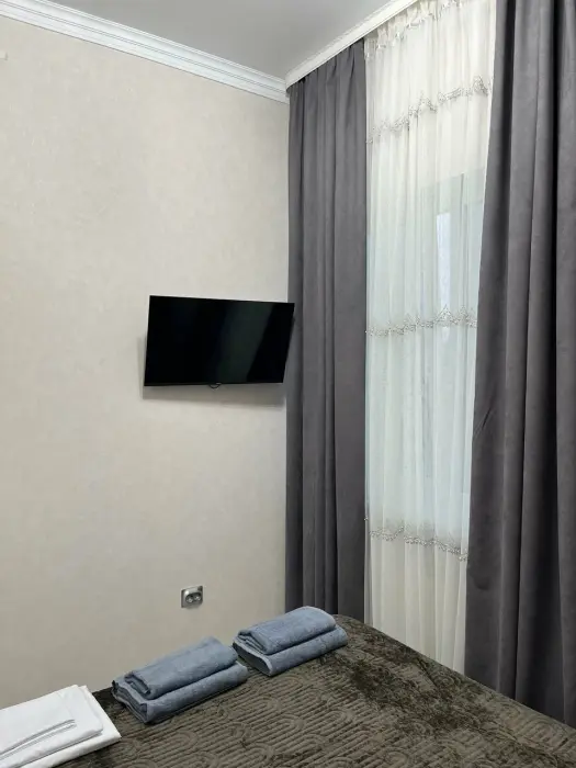 В номере: двуспальная кровать, Wi-Fi в номере, Сейф, Душ, Электрочайник, Телевизор, Кондиционер, Халат, Фен