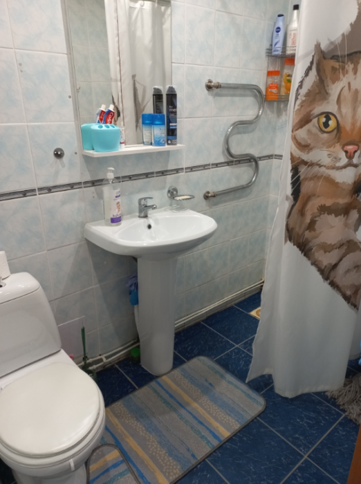 В ванной есть сушилка для белья, теплый пол, фен, стиральная машинка, душевая кабина, шампунь, полотенца, туалетные принадлежности.