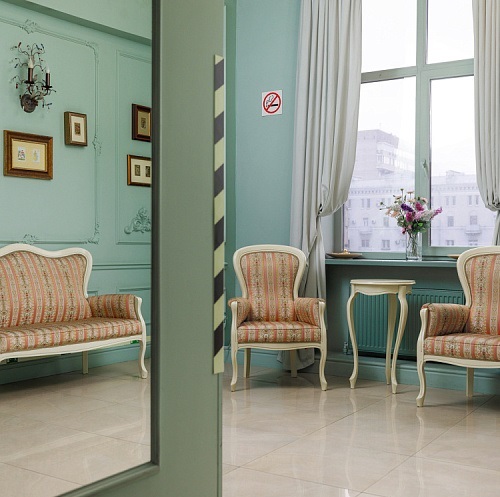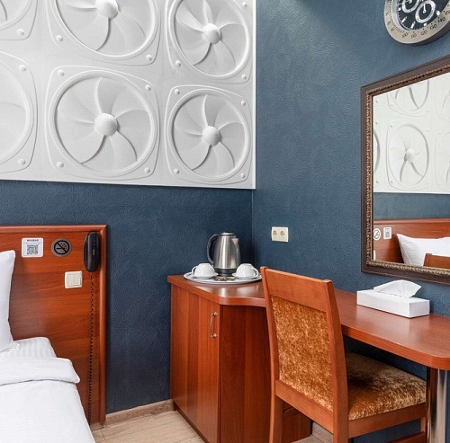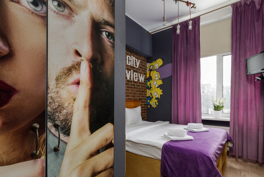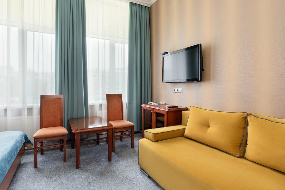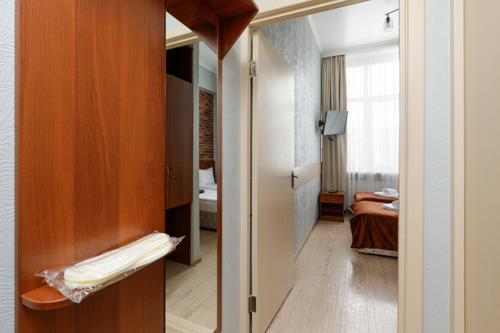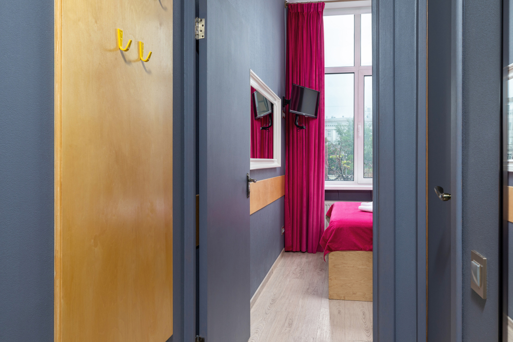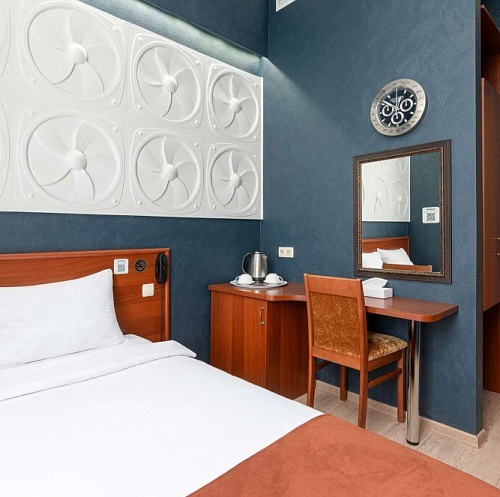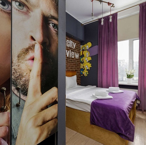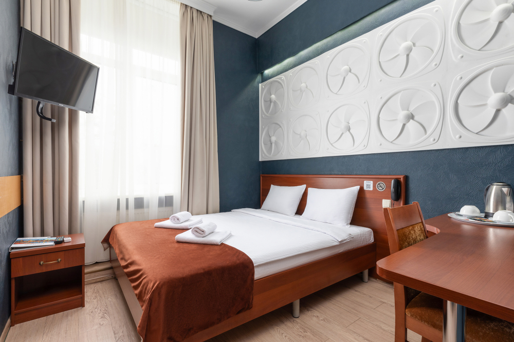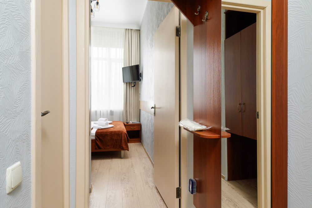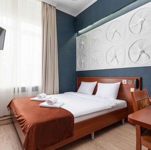 Большинство номеров выходят окнами на ленинградский проспект, также есть несколько номеров с окнами во двор.