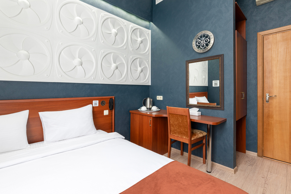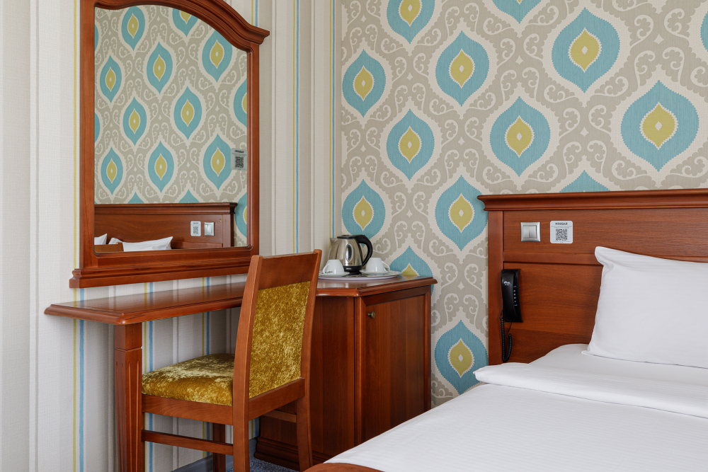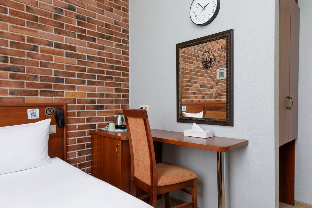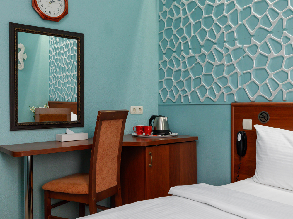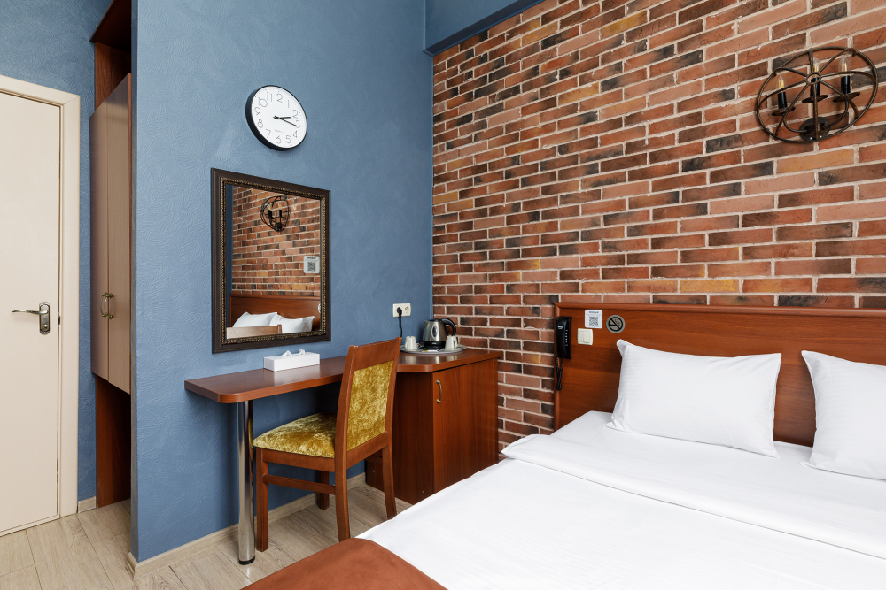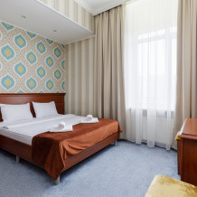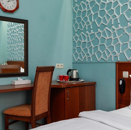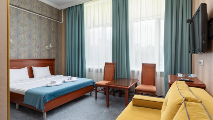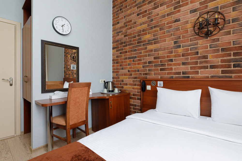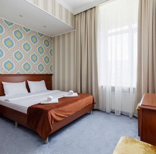 В нашем отеле вы сможете подобрать комфортный номер в соответствии со своими предпочтениями: в отеле предлагаются двухместные номера различных категорий: Стандарт эконом, Стандарт DBL или TWN, Стандарт улучшенный и Стандарт премиум с джакузи. Все номера оборудованы удобной мебелью, мини-холодильником и современной техникой.