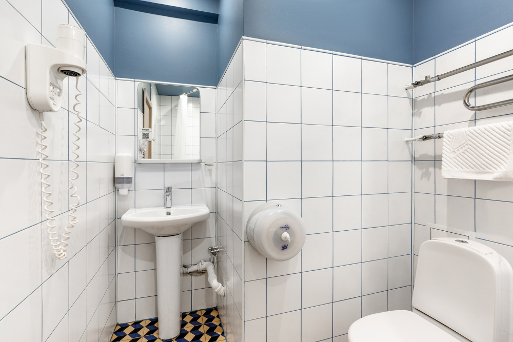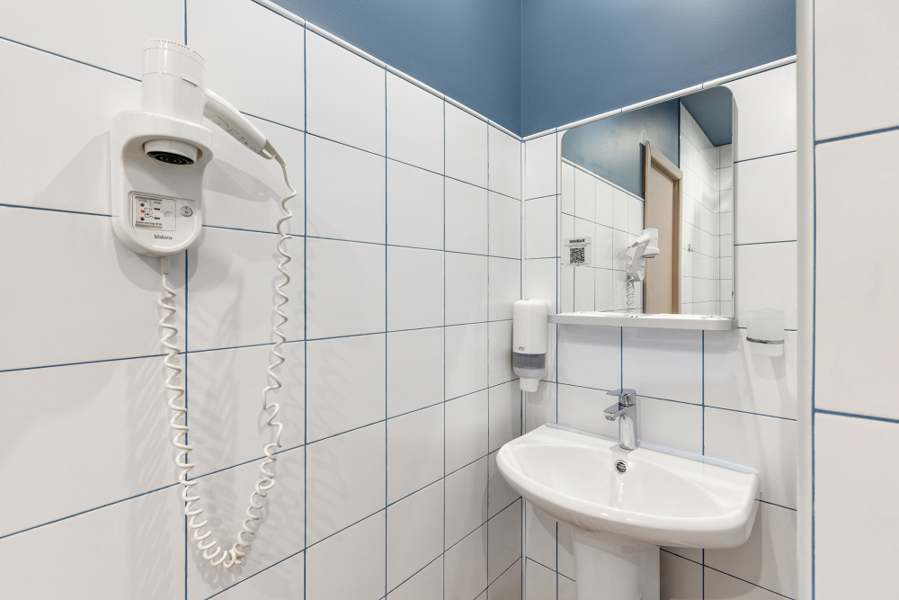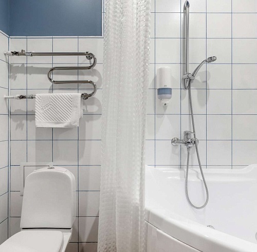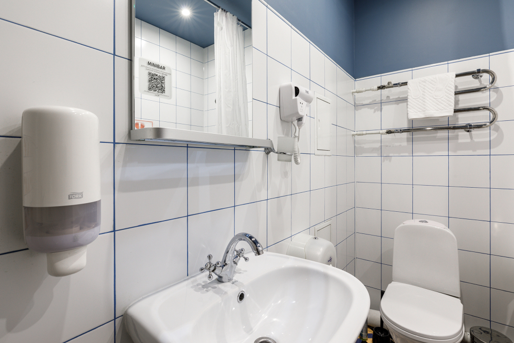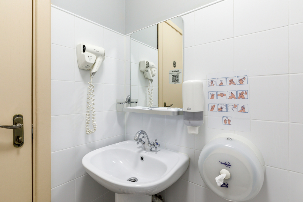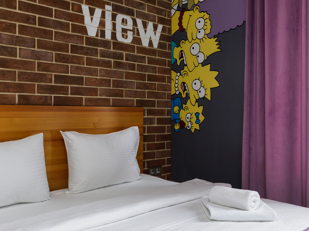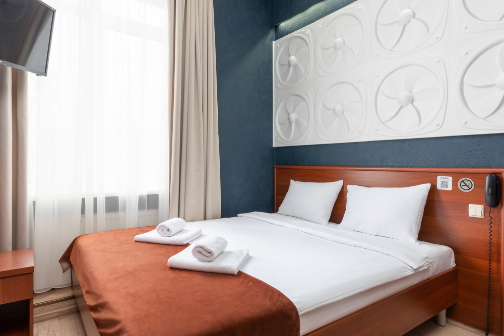 Здесь есть все необходимое: двуспальная кровать с мягким пастельным бельём, тапочки и полотенца, прикроватное освещение и плотные ролл-шторы на окне.