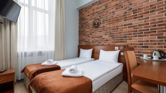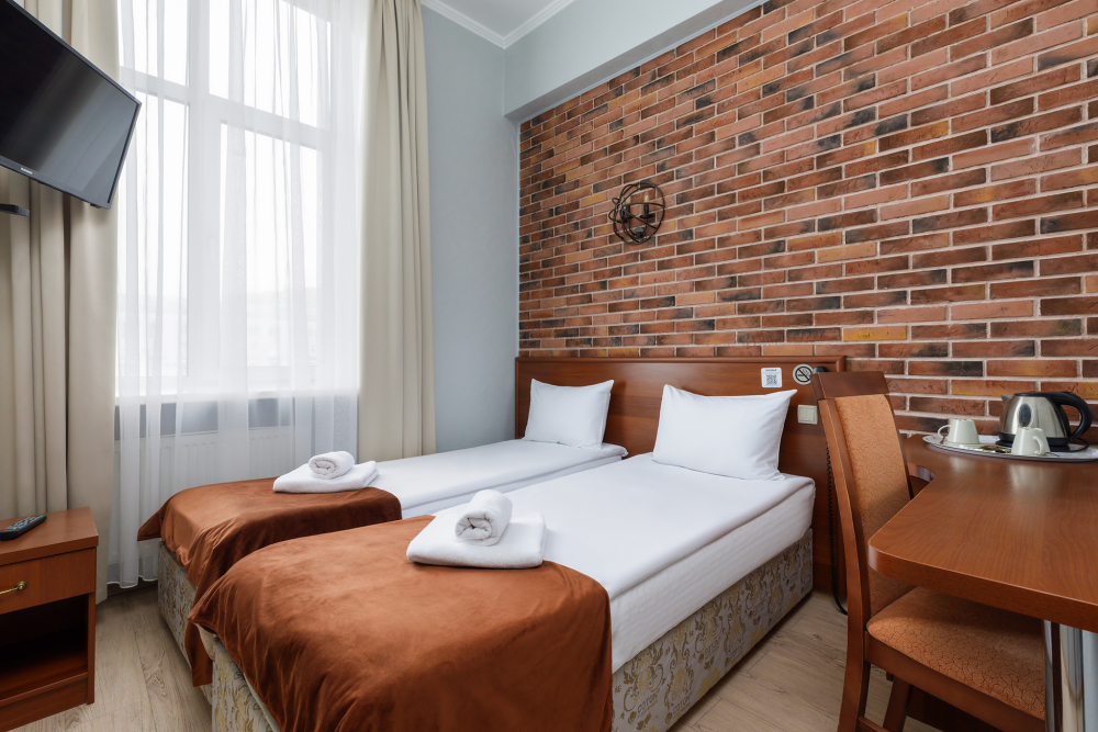 Стандартный номер с 2 кроватями в мягких спокойных тонах предлагает необходимый комфорт для гостей, которым нужны отдельные кровати.