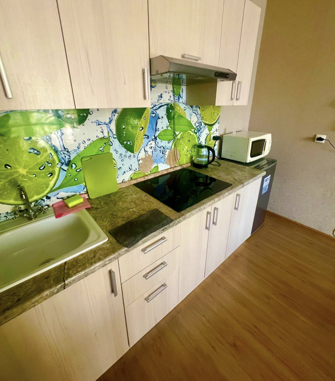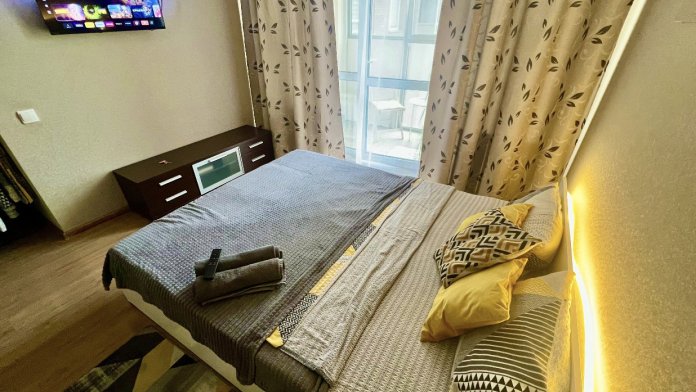 Двуспальная кровать, диван, Smart TV телевизор, Wi-Fi, полностью оборудованная кухня: плита, чайник, холодильник, вся необходимая посуда и принадлежности. Стиральная машина, утюг, фен. Чистое постельное бельё.