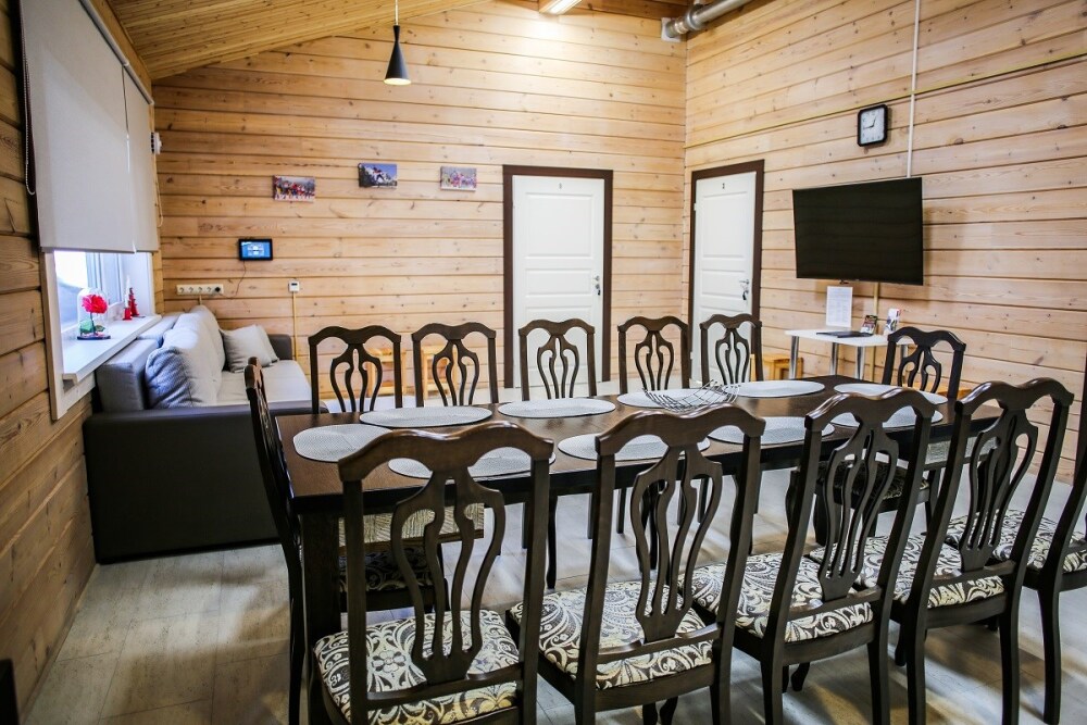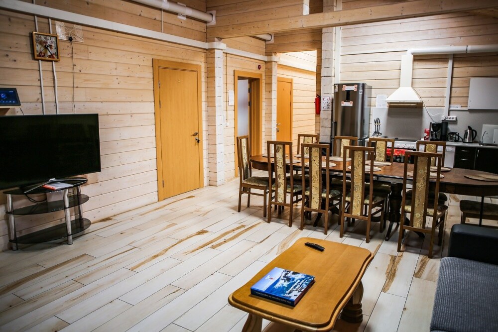 Отдыхайте на полную – прямо на территории есть спортивные объекты, специализированный спортивный магазин, прокат инвентаря, рядом – ресторан с вкуснейшими блюдами северной кухни, а также живописные места, которые точно захочется посетить.
