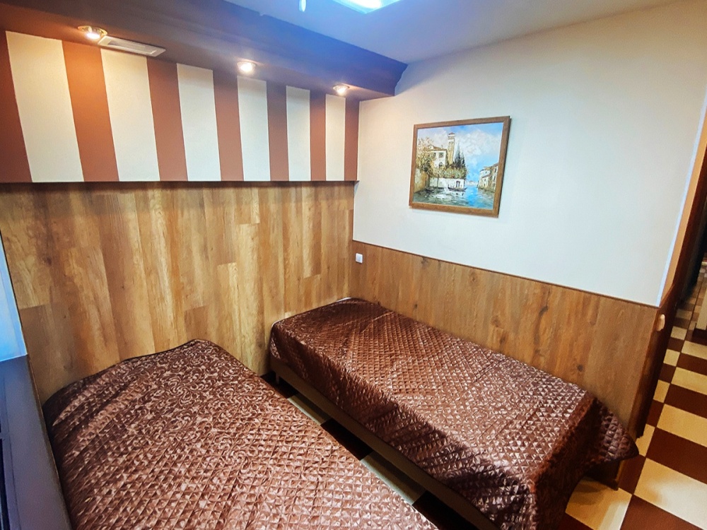 В номере 2 односпальные кровати, холодильник, телевизор.