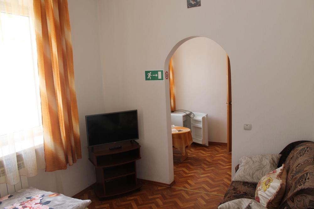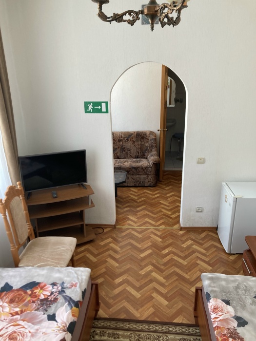 Оснащение номера и мебель: вентилятор, рабочее пространство, утюг, шкаф/гардероб, светонепроницаемые шторы, мини-бар, высокие потолки (3,3 м).