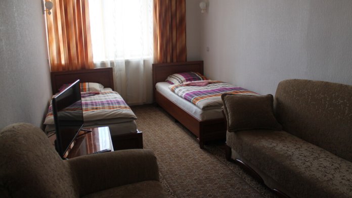 Оснащение номера и мебель: вентилятор, рабочее пространство, утюг, шкаф/гардероб, светонепроницаемые шторы.