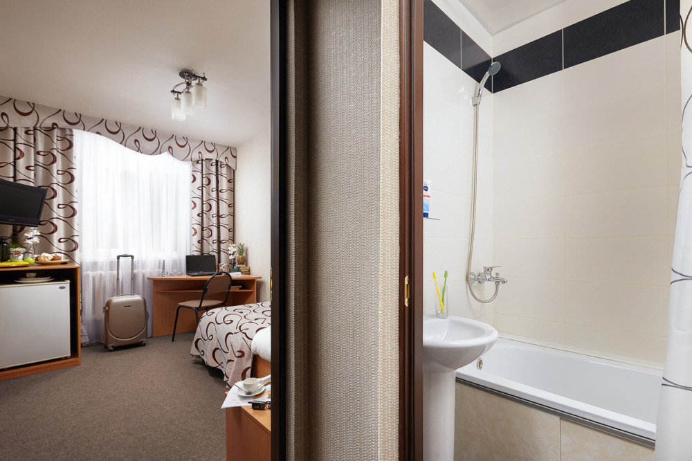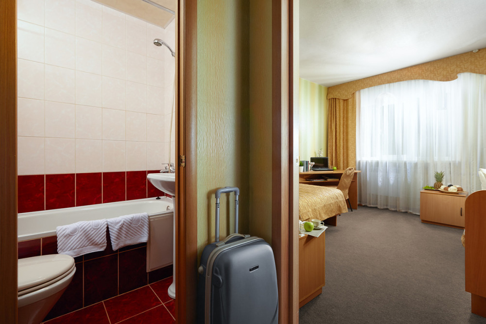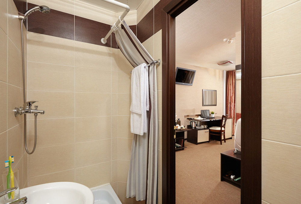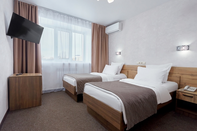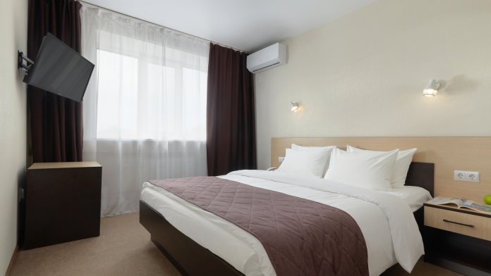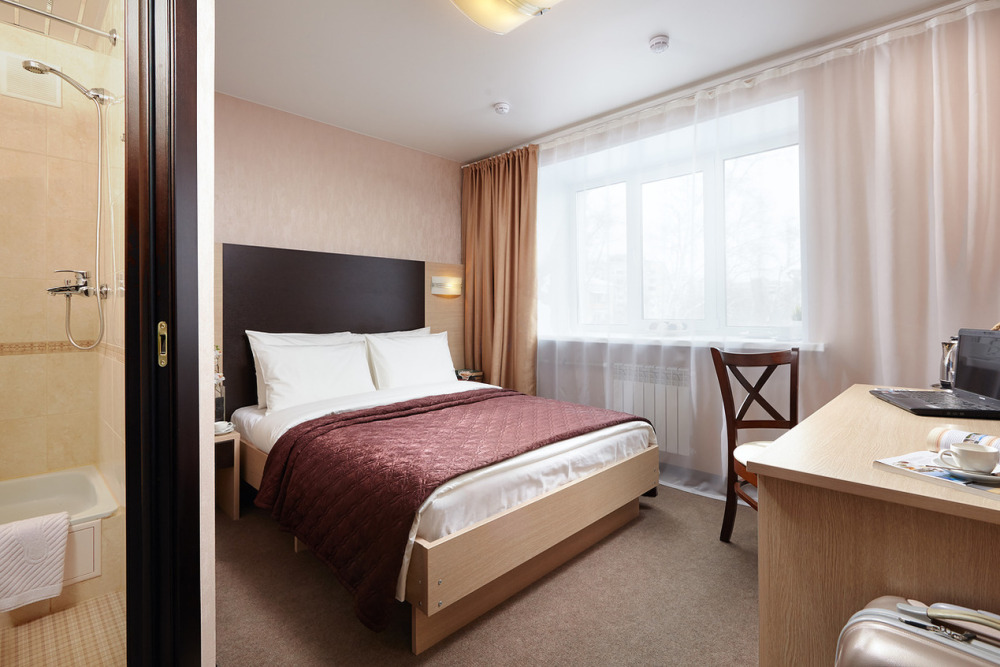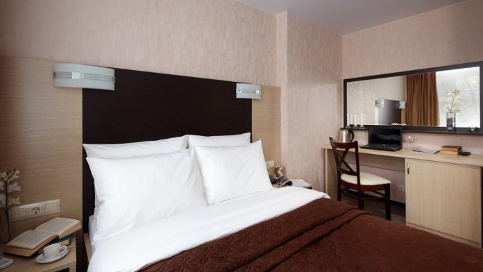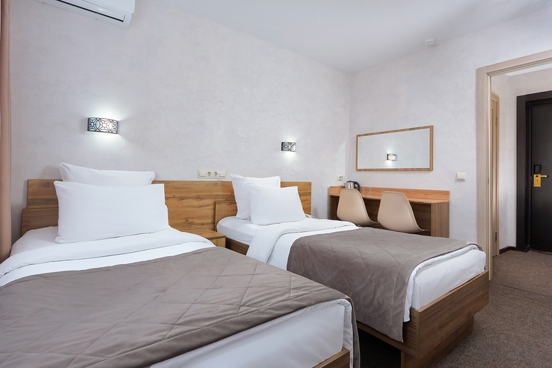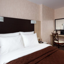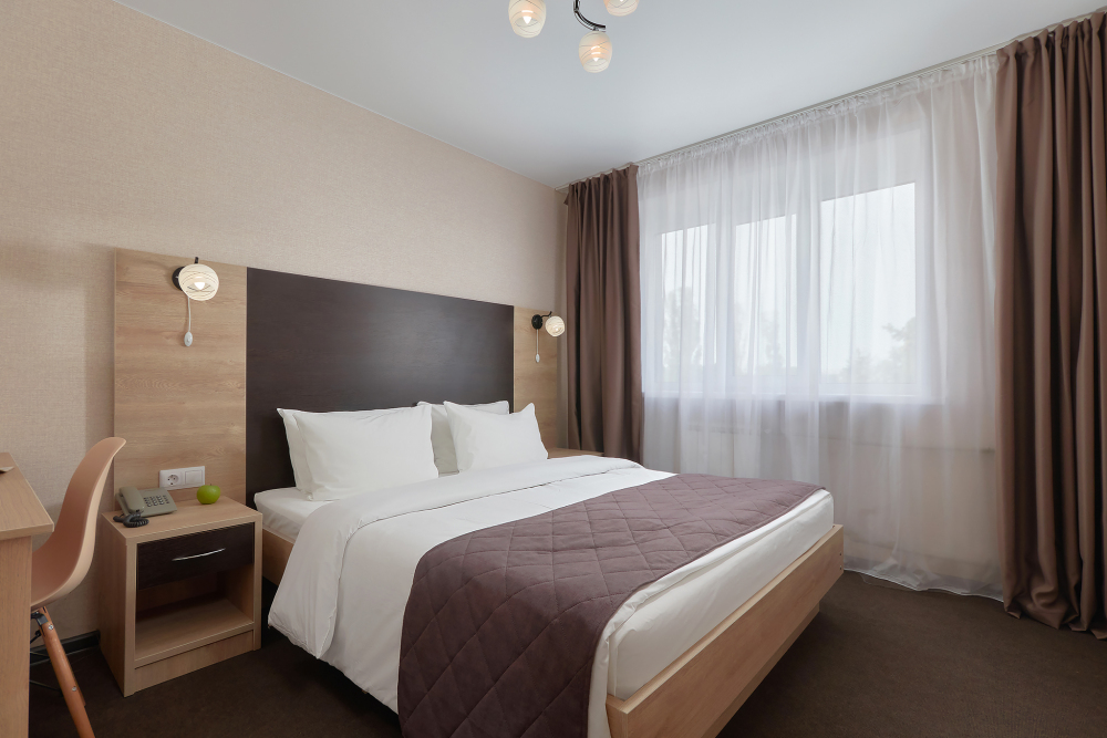 В номере: двуспальная кровать и диван-кровать, возможно трехместное размещение.