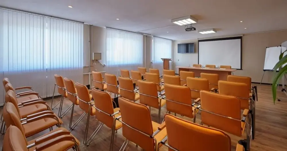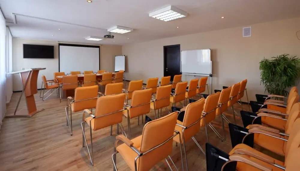 Конференц-зал, рассчитанный на 30 человек, оснащенный современной мебелью, кондиционером, телевизором, видеопроектором, DVD.
