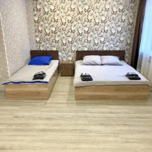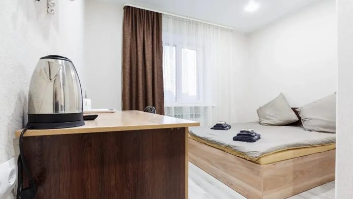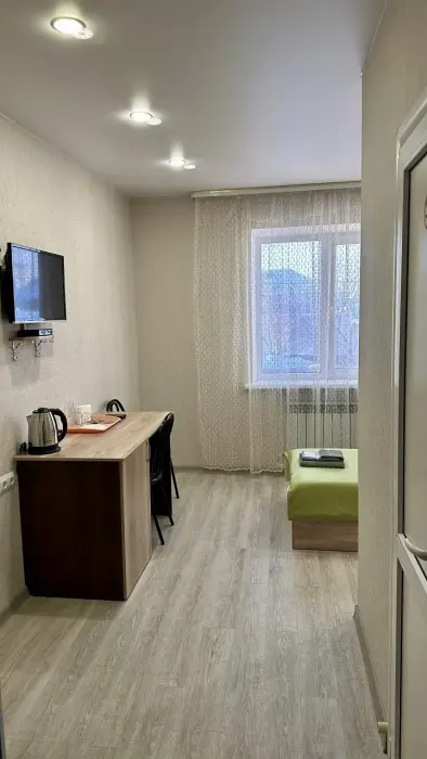 Для проживания предоставляются комнаты с односпальными, двуспальными или раздельными кроватями. В каждой из них есть отдельный санузел, удобная мебель и телевизор, электрический чайник, мини-холодильник, полки для хранения вещей.